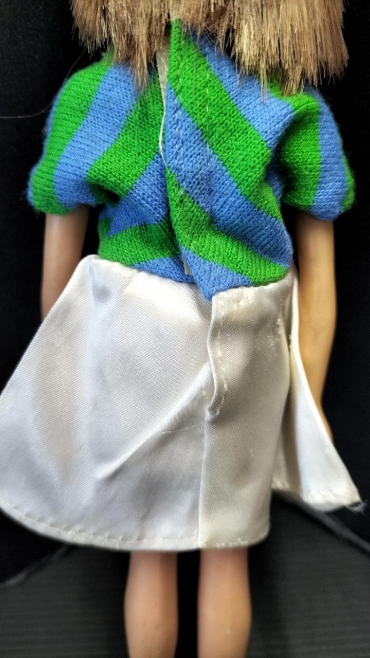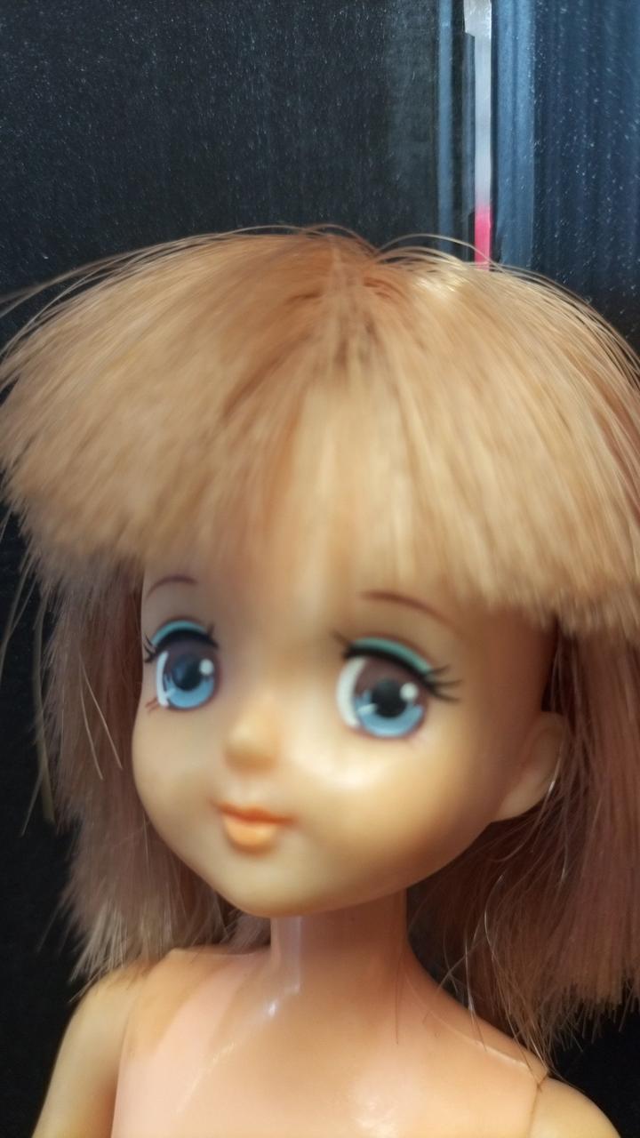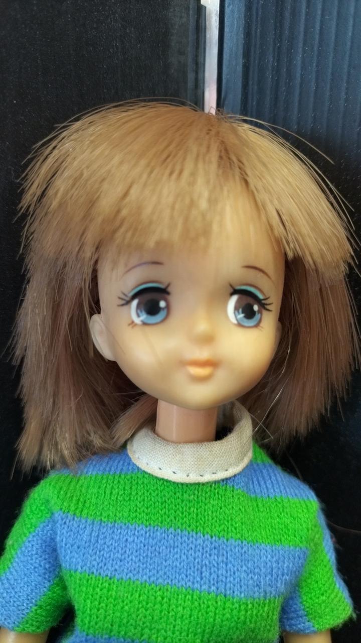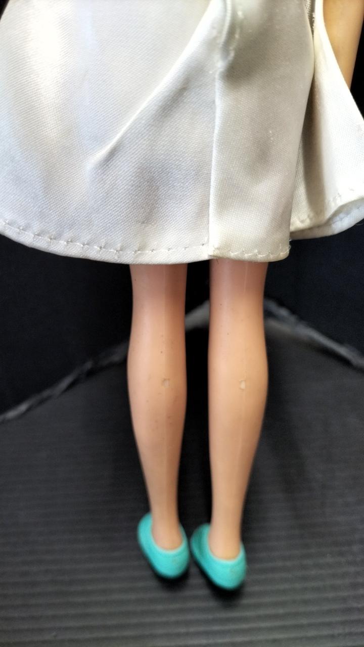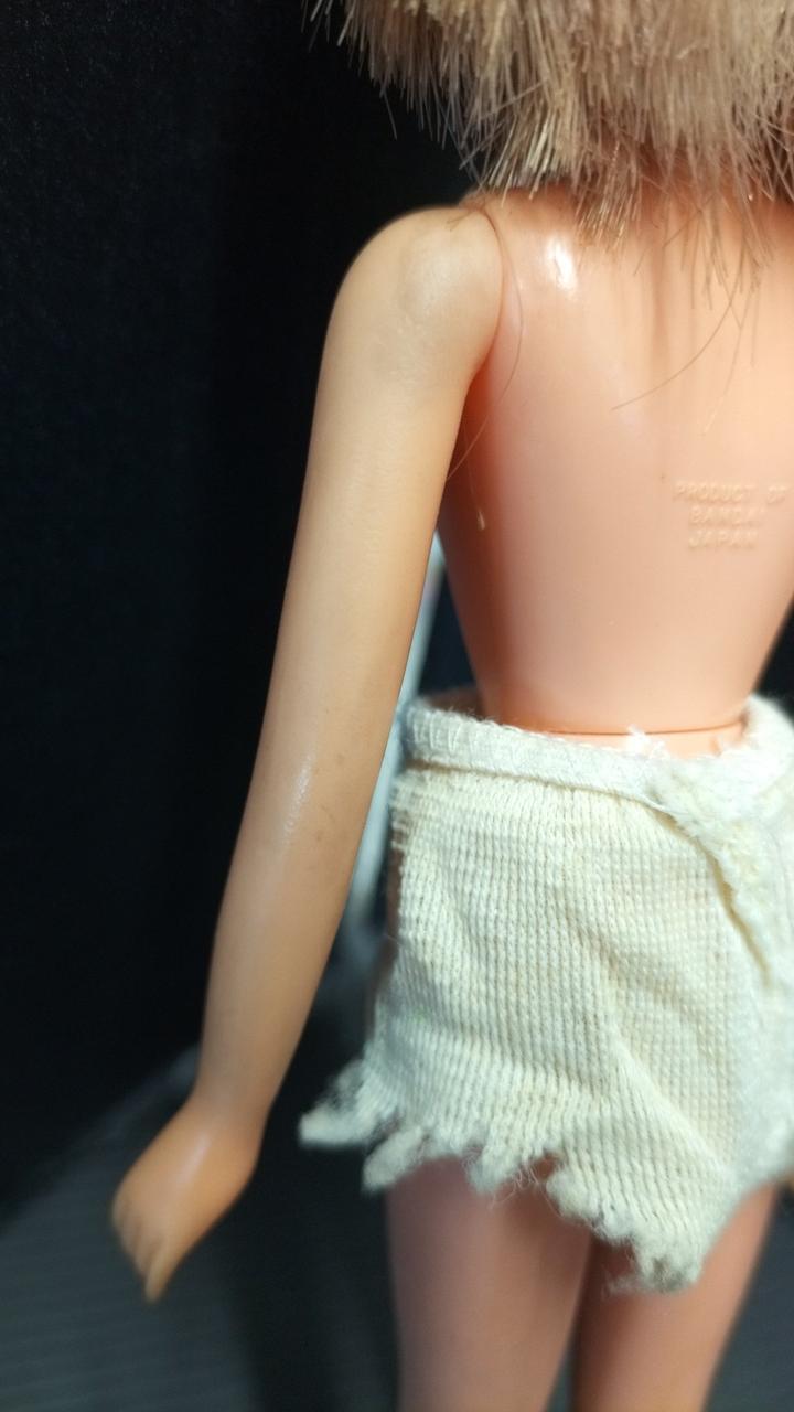 上半身首周り、タンクトップの形に変色あり。 |