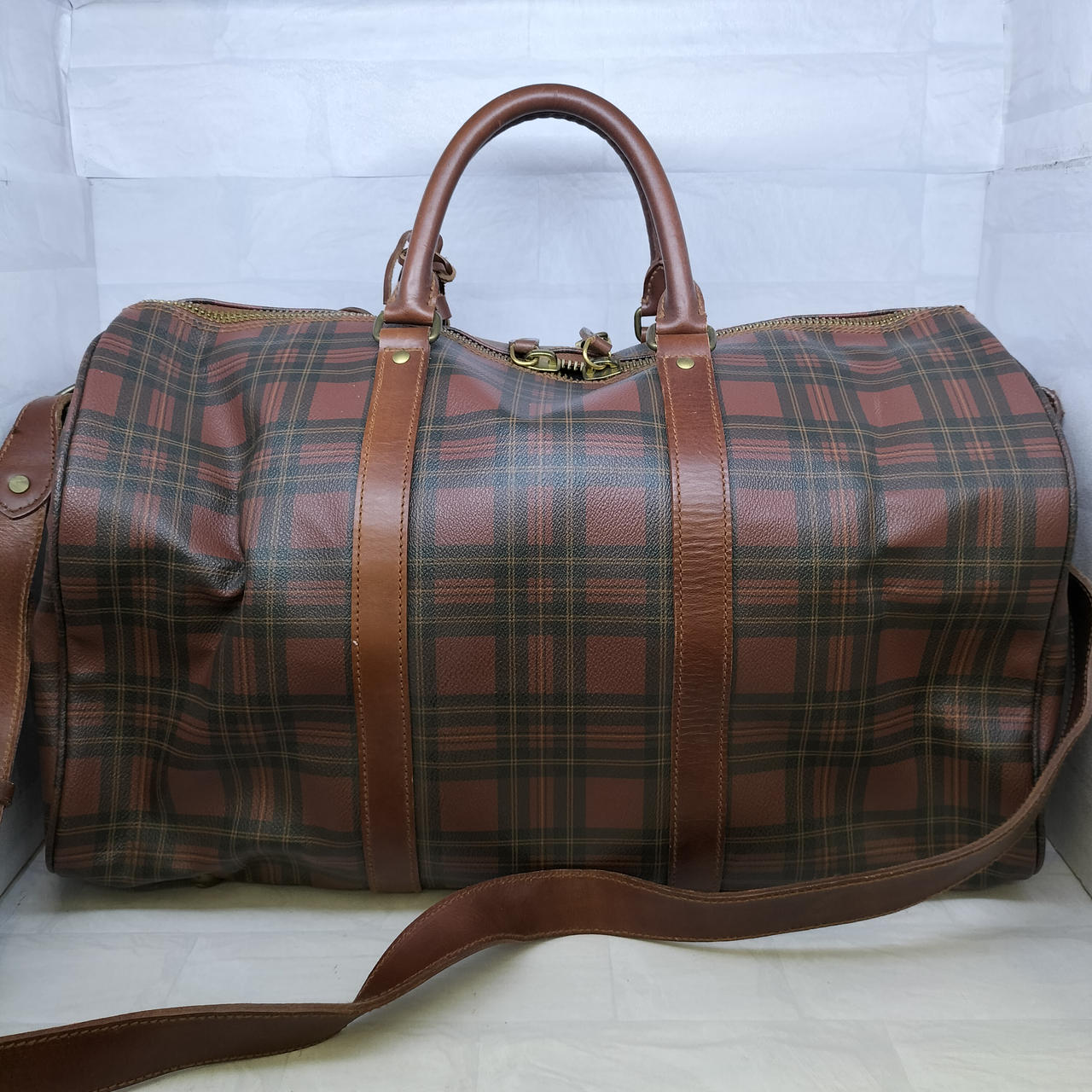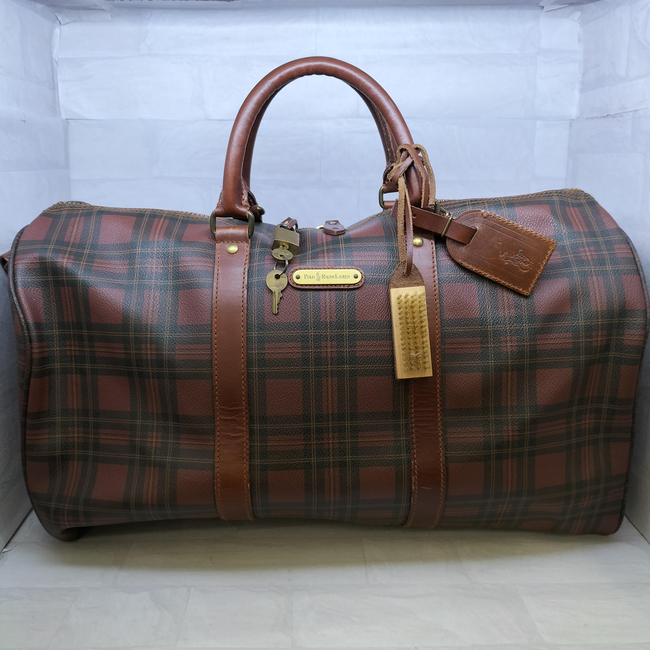 一目でラルフローレンと分かる、気品あふれるレッドチェック。深みのあるブラウンレザーとのコントラストが、ヴィンテージライクで大人の余裕を感じさせます。流行に左右されず、使い込むほどに風合いが増す一生モノのバッグです。