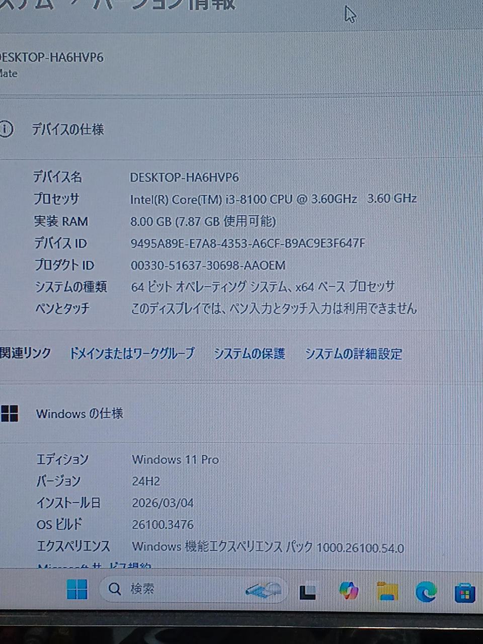 CPU:Corei3-8100 3.6GHz メモリ:8GB SATA SSD1TB |
