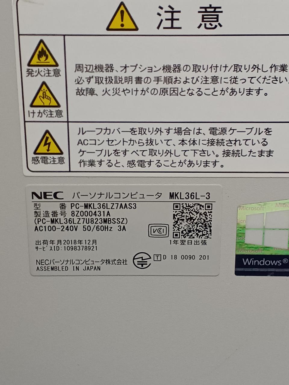 型番:PC-MKL36LZ7AAS3