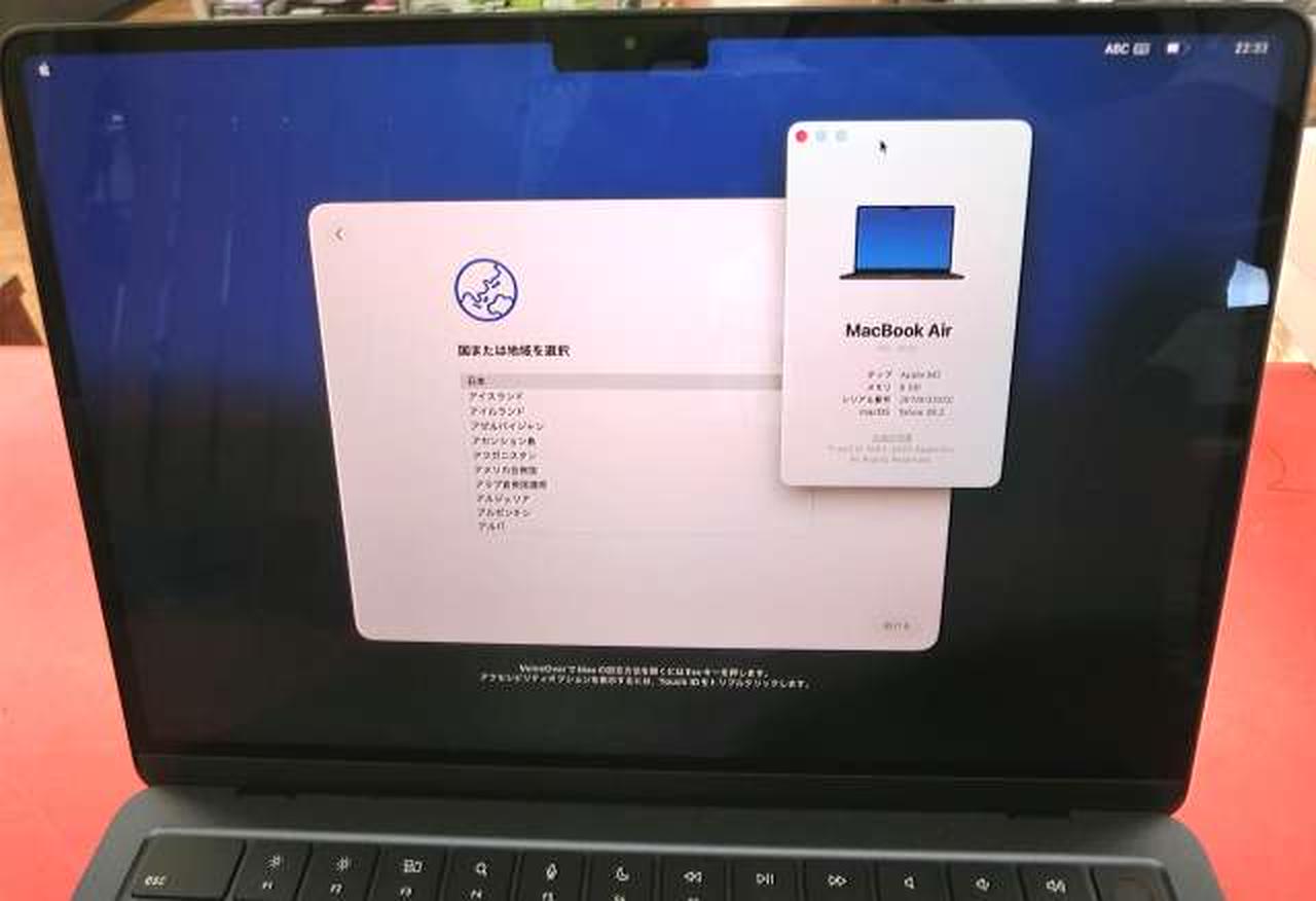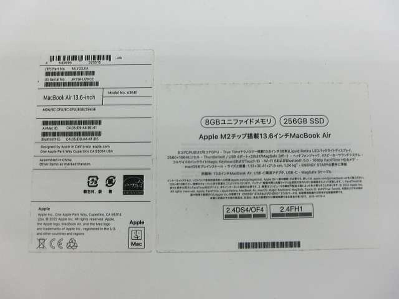 CPU:M2 RAM:8GB ストレージ:SSD256GB OS:Tahoe 26.2 画面サイズ:13.6インチ |