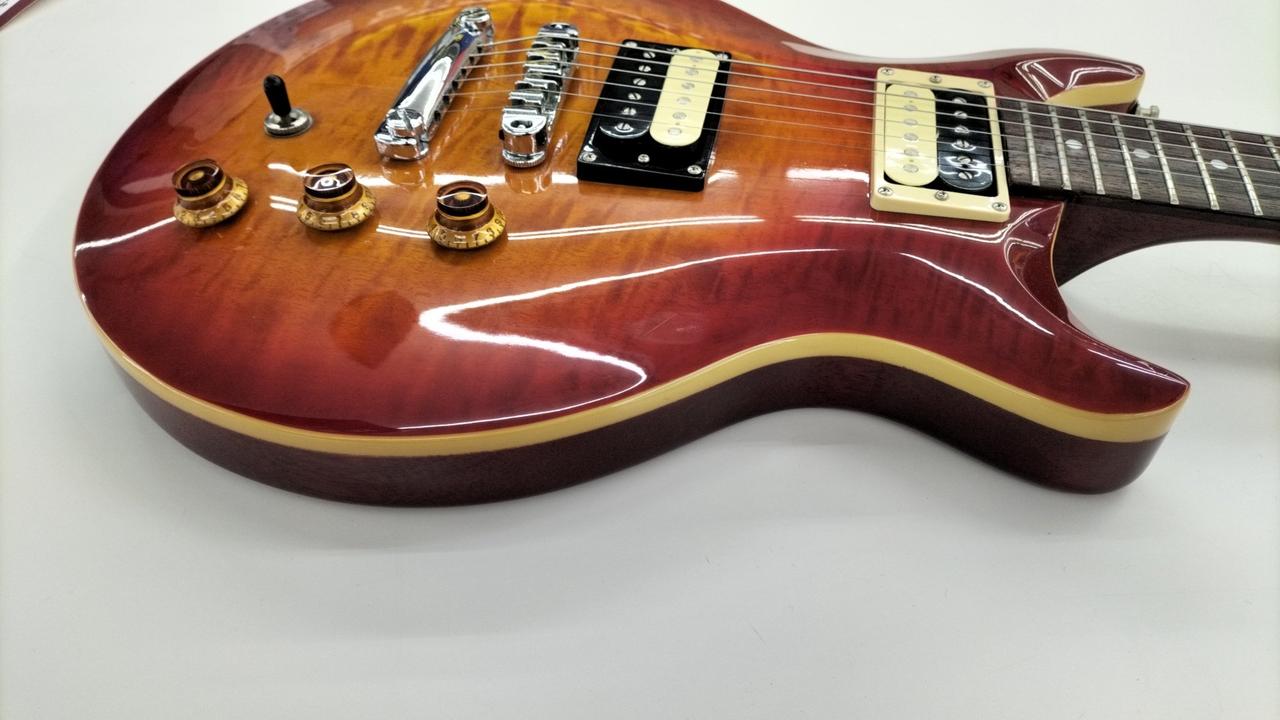 トーンノブが反応しませんでした。フレットが残り少なめです。6弦が少しビビります。ボディ裏面に打痕あり。