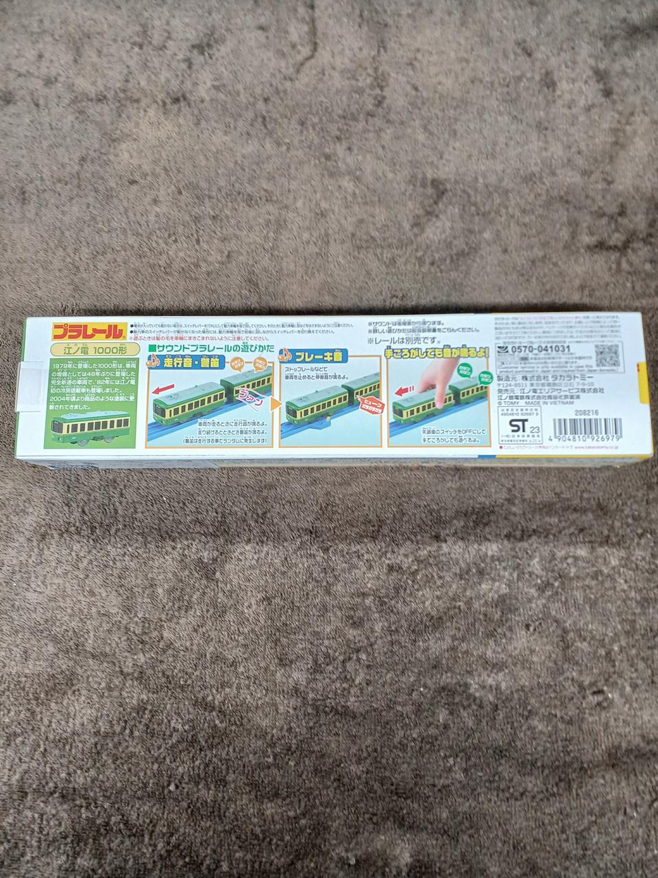 江ノ電の主力車両である1000形を再現しており、車体にはシールのライトや独特のカラーリングが施されています。