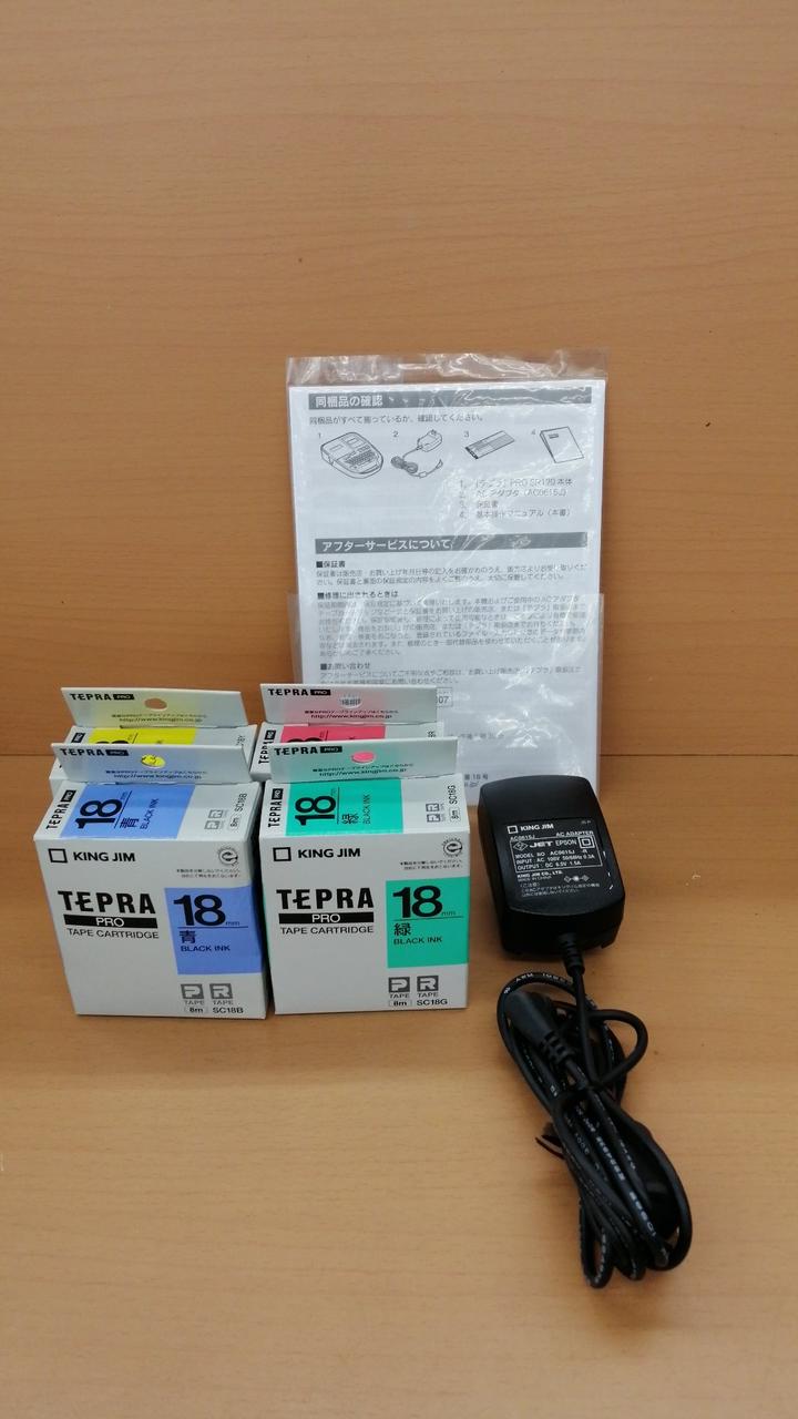 箱・説明書・ACアダプター・テプラ(青、黄、緑、赤) |