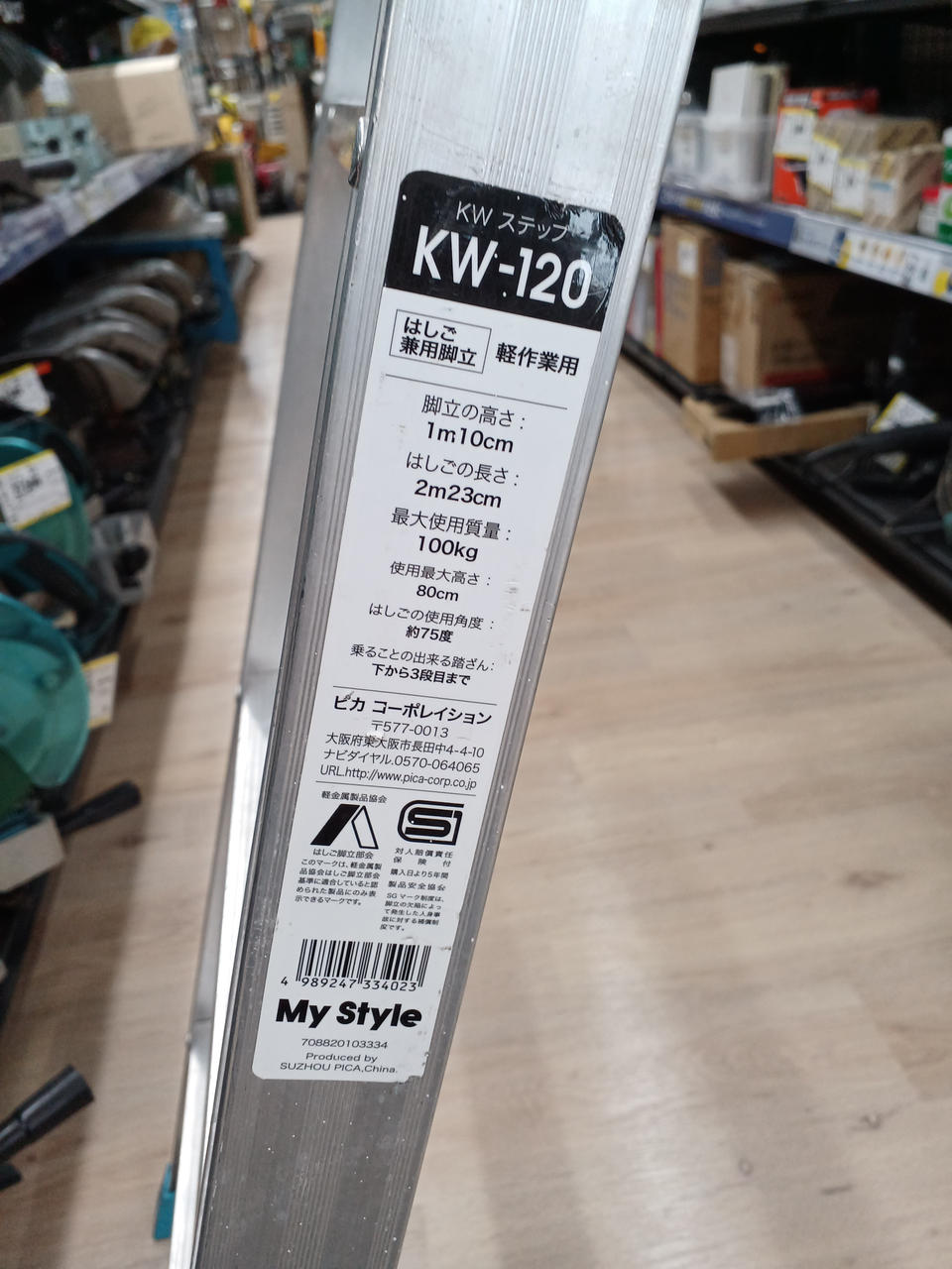 サイズ:脚立の高さ1.10m、はしごの長さ2.33m、最大使用質量100kg |