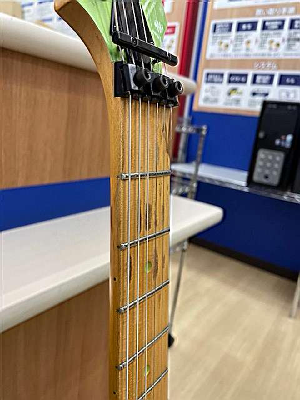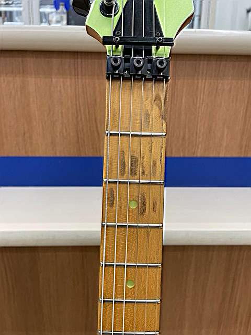 ネック現状:やや順反り、トラス:やや余裕有、フレット残:7割、弦高(12F):6弦側2㎜/1弦側1.5㎜ |