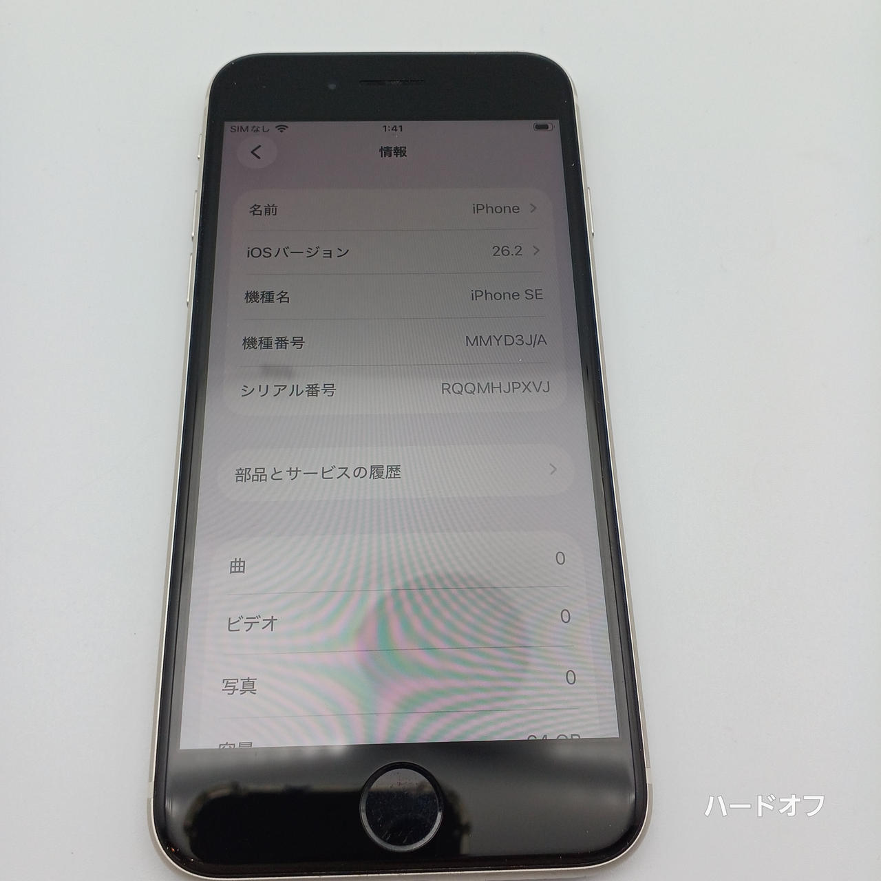 iOS:26.2 ストレージ:64GB カメラ:1200万画素数 サイズ:4.7インチ |