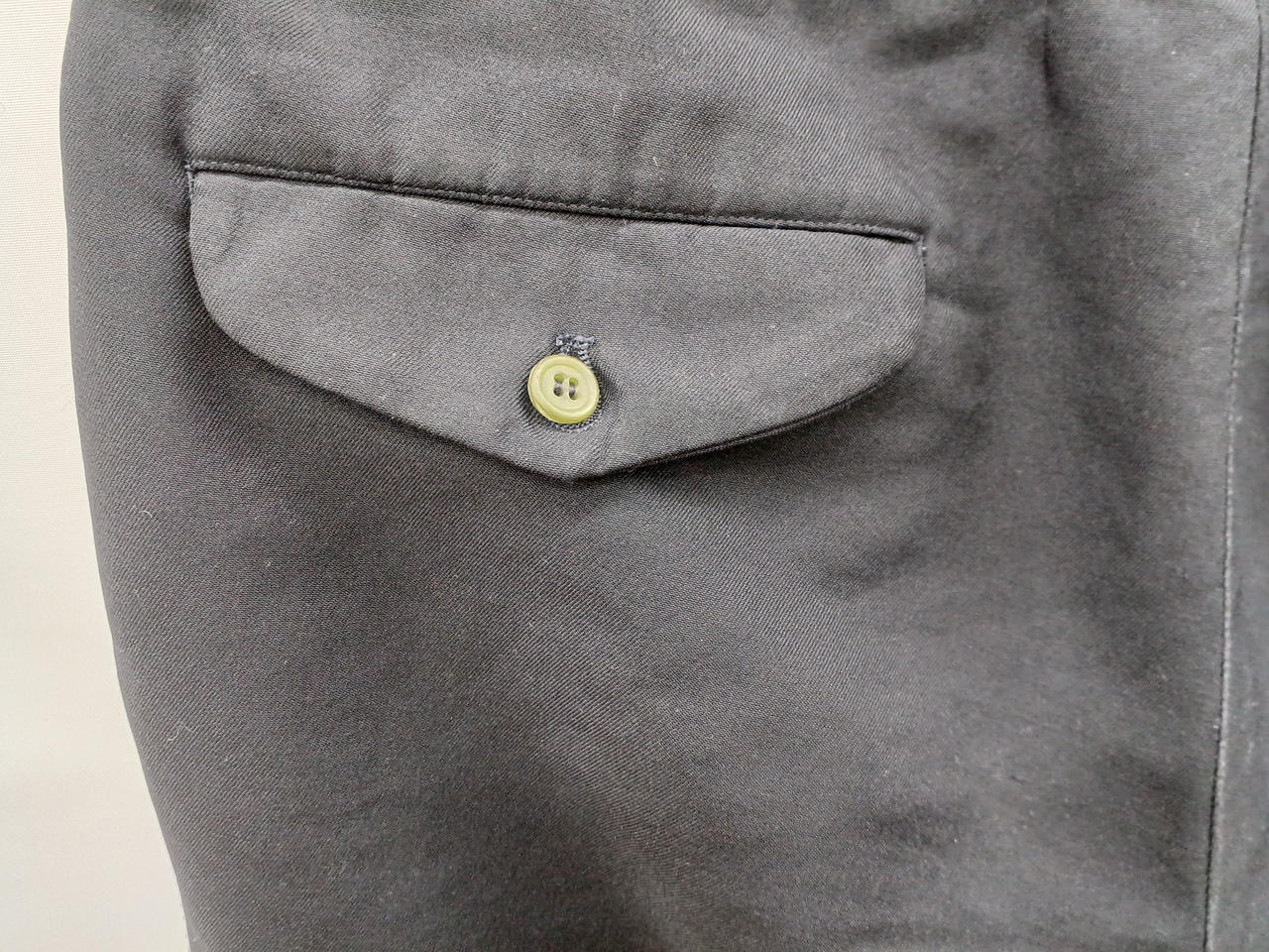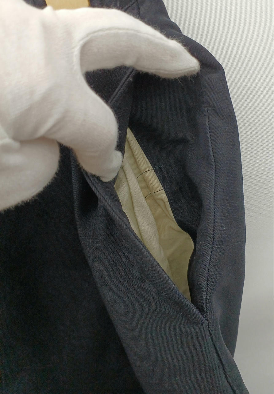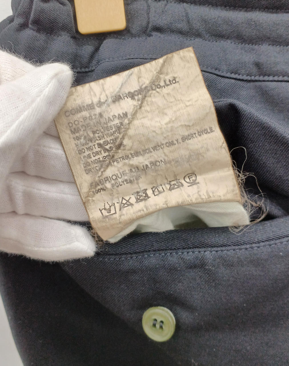 成分表記タグ劣化、全体的に使用感あり、後ろポケットボタン割れあり |