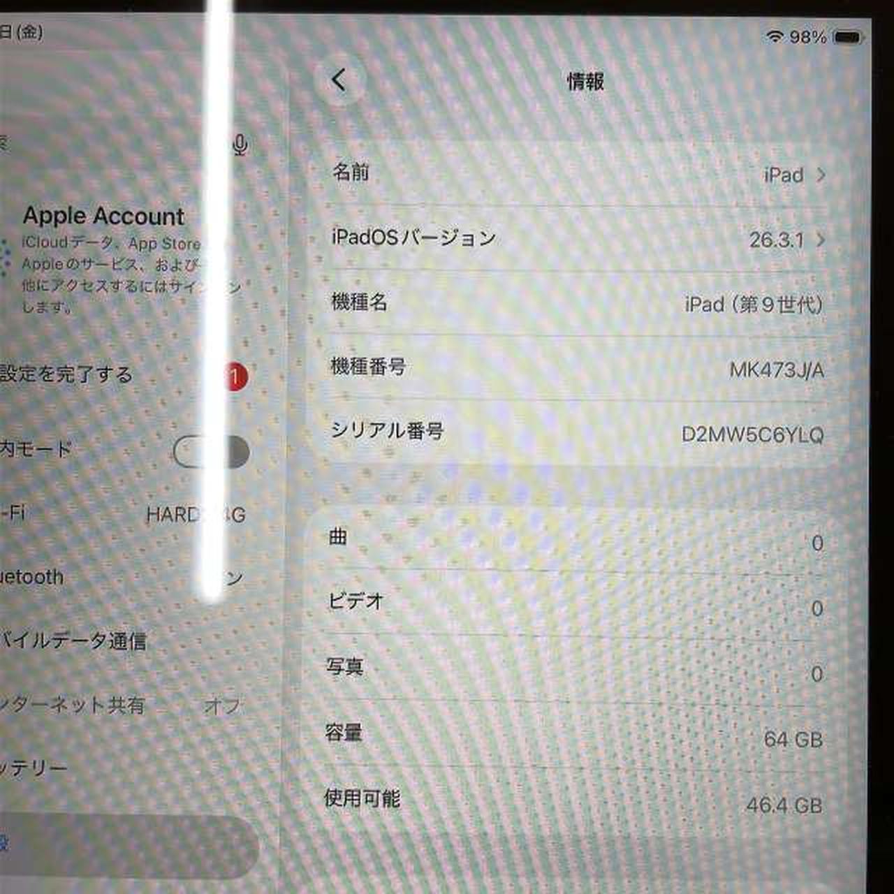OS:26.3.1 画面:10.2インチ(2160x1620) 64GB WI-FI/BLUETOOTH対応 |