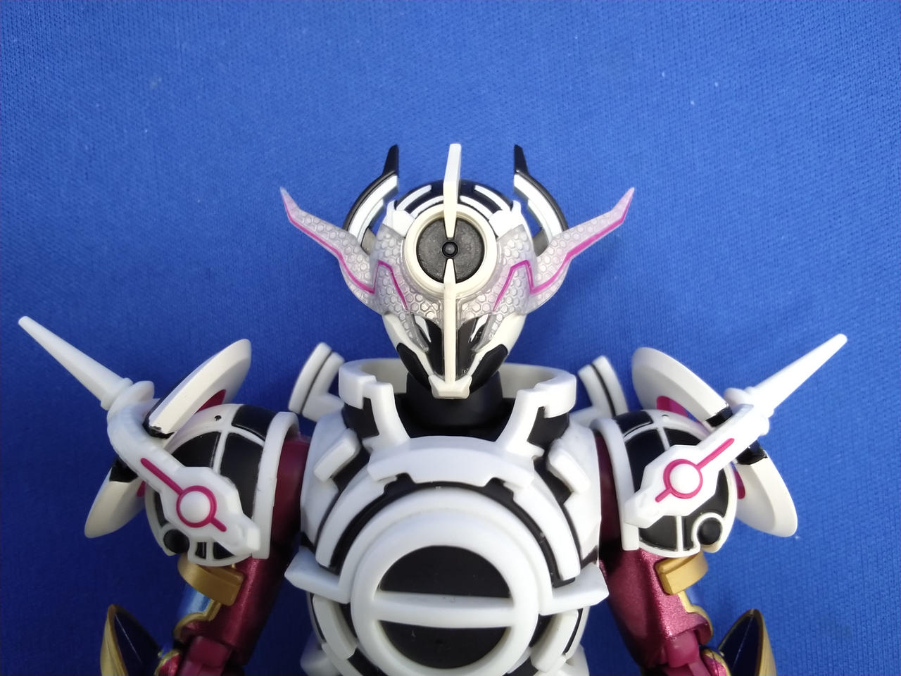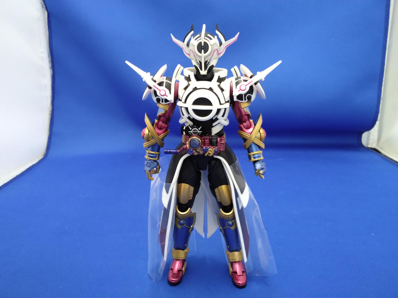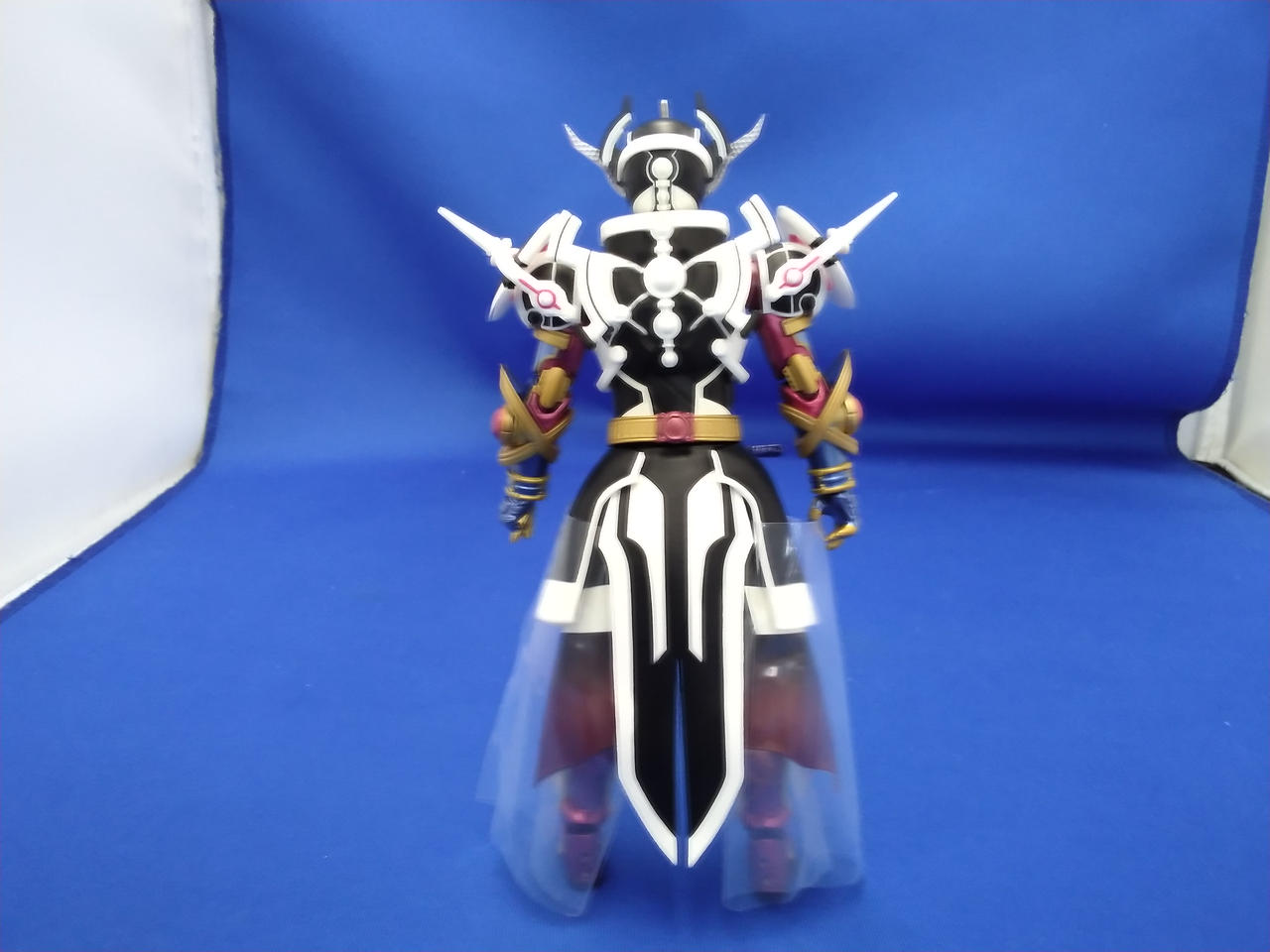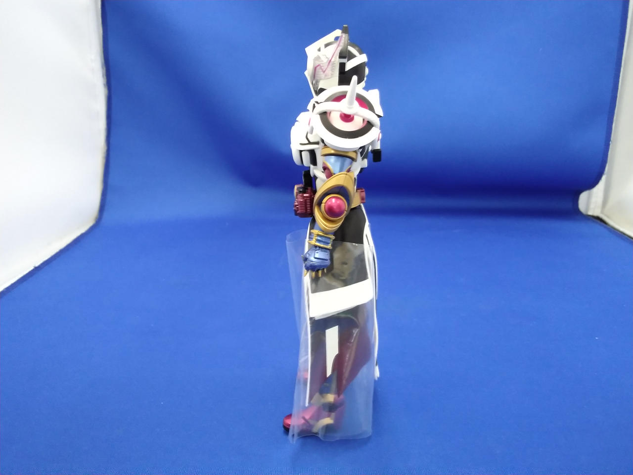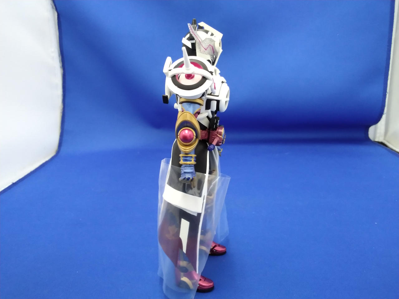 写真だと分かりづらいですが、顔や胴、マント等、白い成型色部分に微妙な変色が見られます |