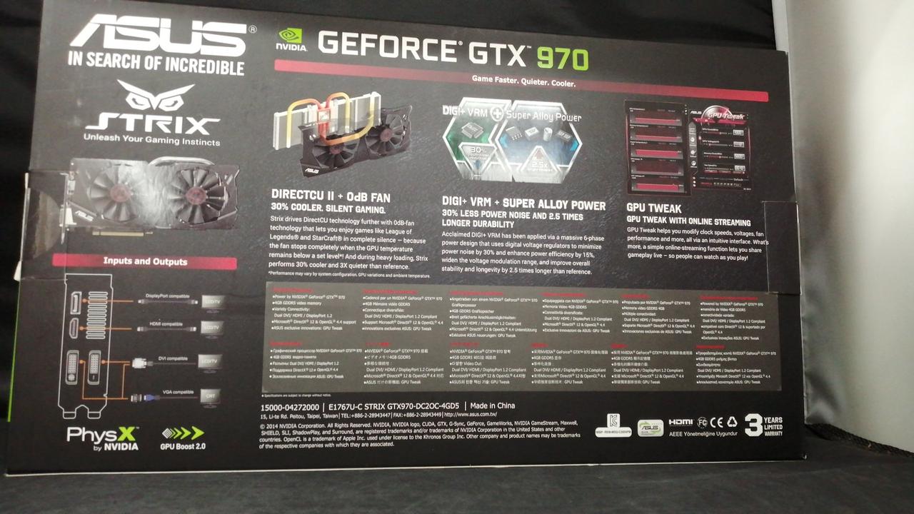 搭載チップ:NVIDIA/GeForce GTX 970 バスインターフェイス:PCI Express 3.0 |