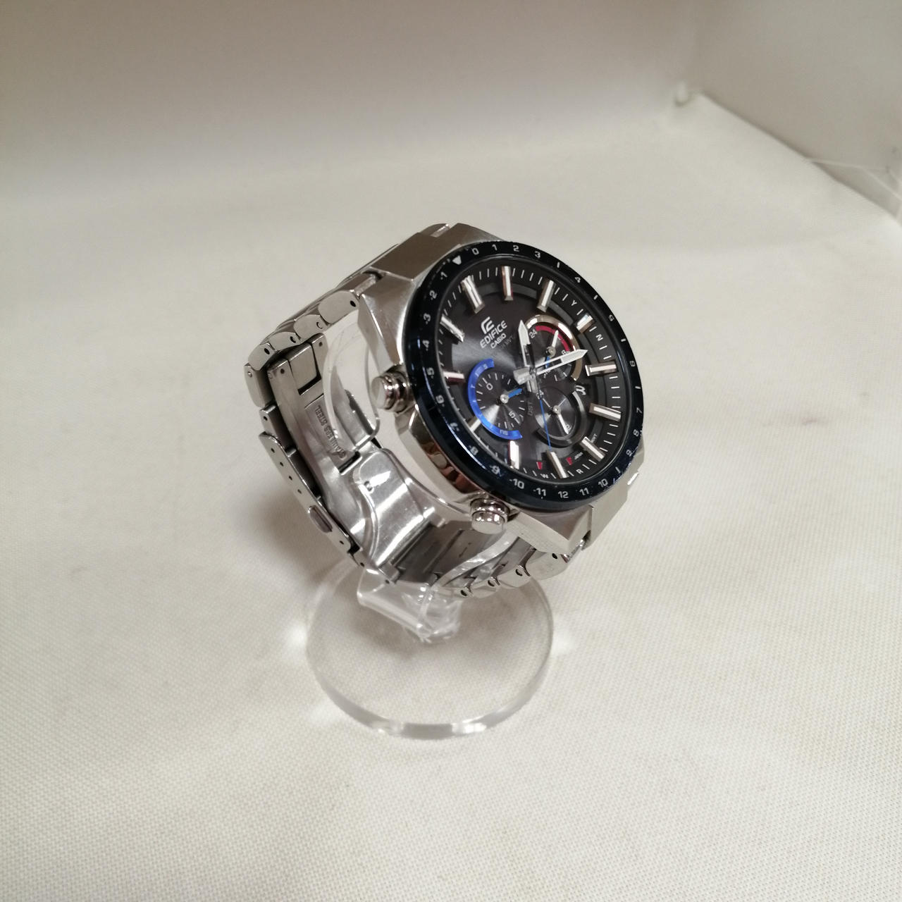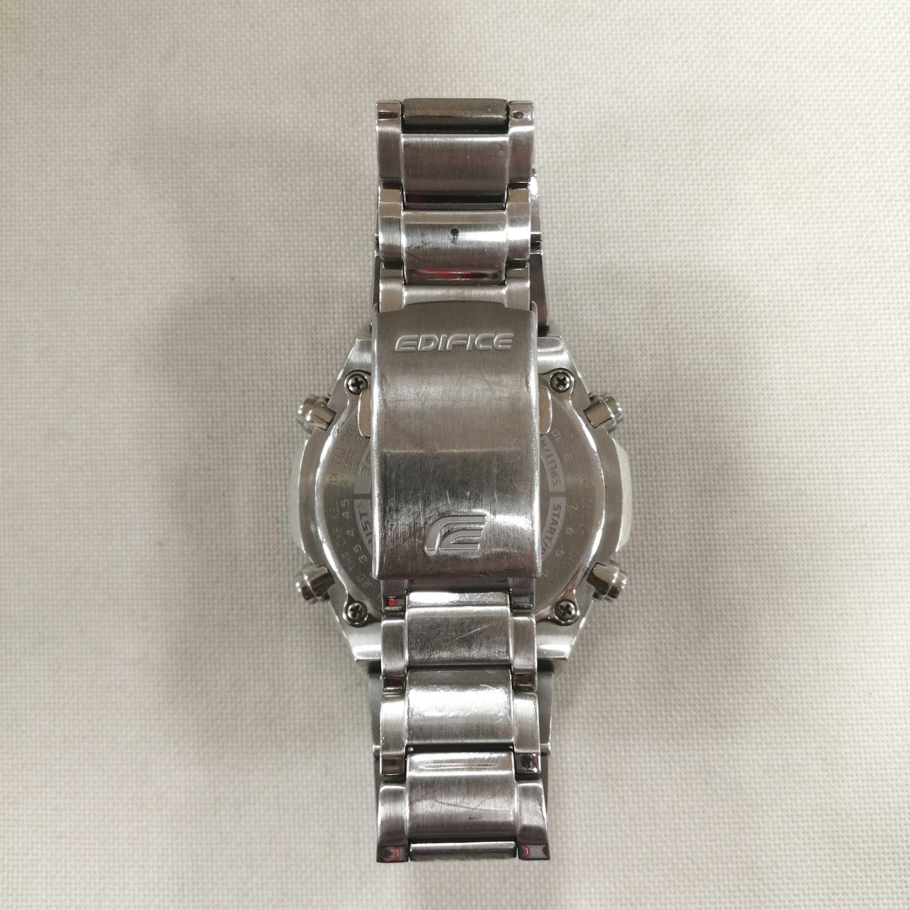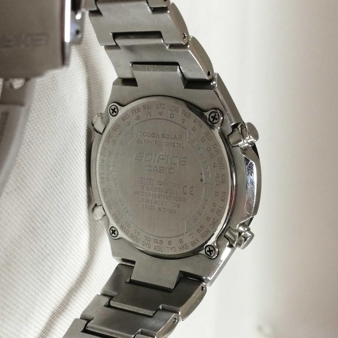 カシオのエディフィス電波ソーラーでございます。全体的に小キズございますが、まだまだご使用いただけます。 |