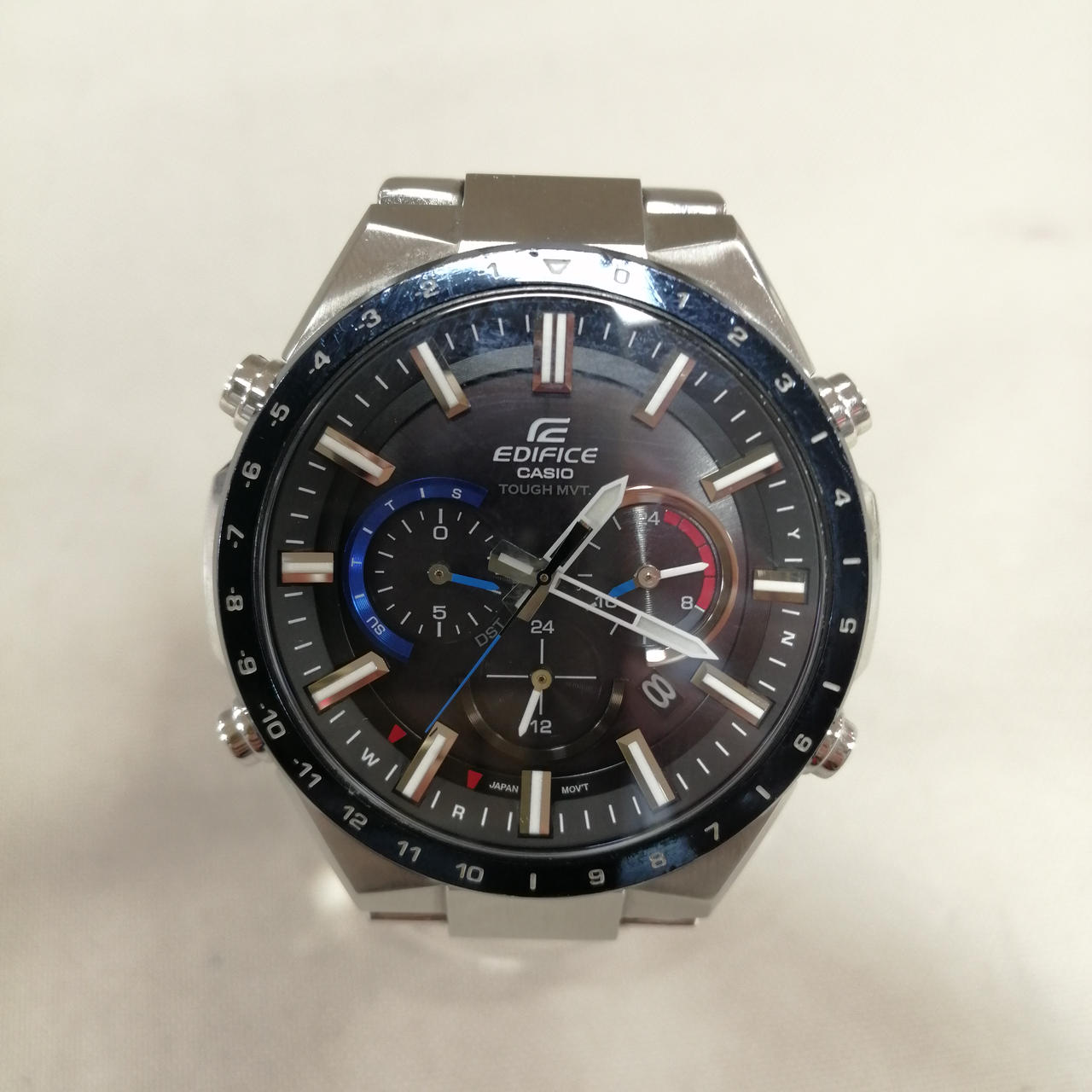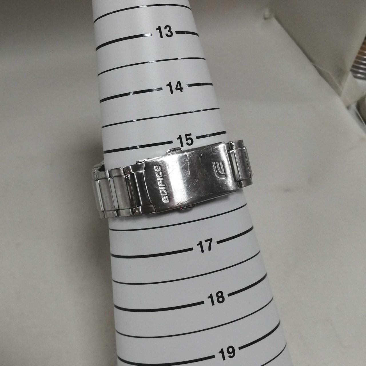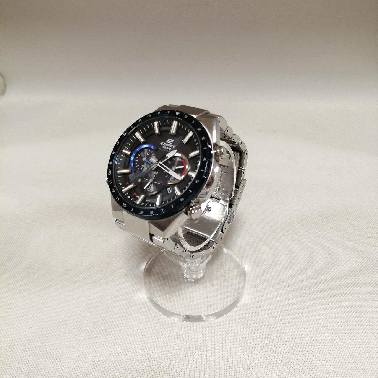カシオのエディフィス電波ソーラーでございます。全体的に小キズございますが、まだまだご使用いただけます。 |