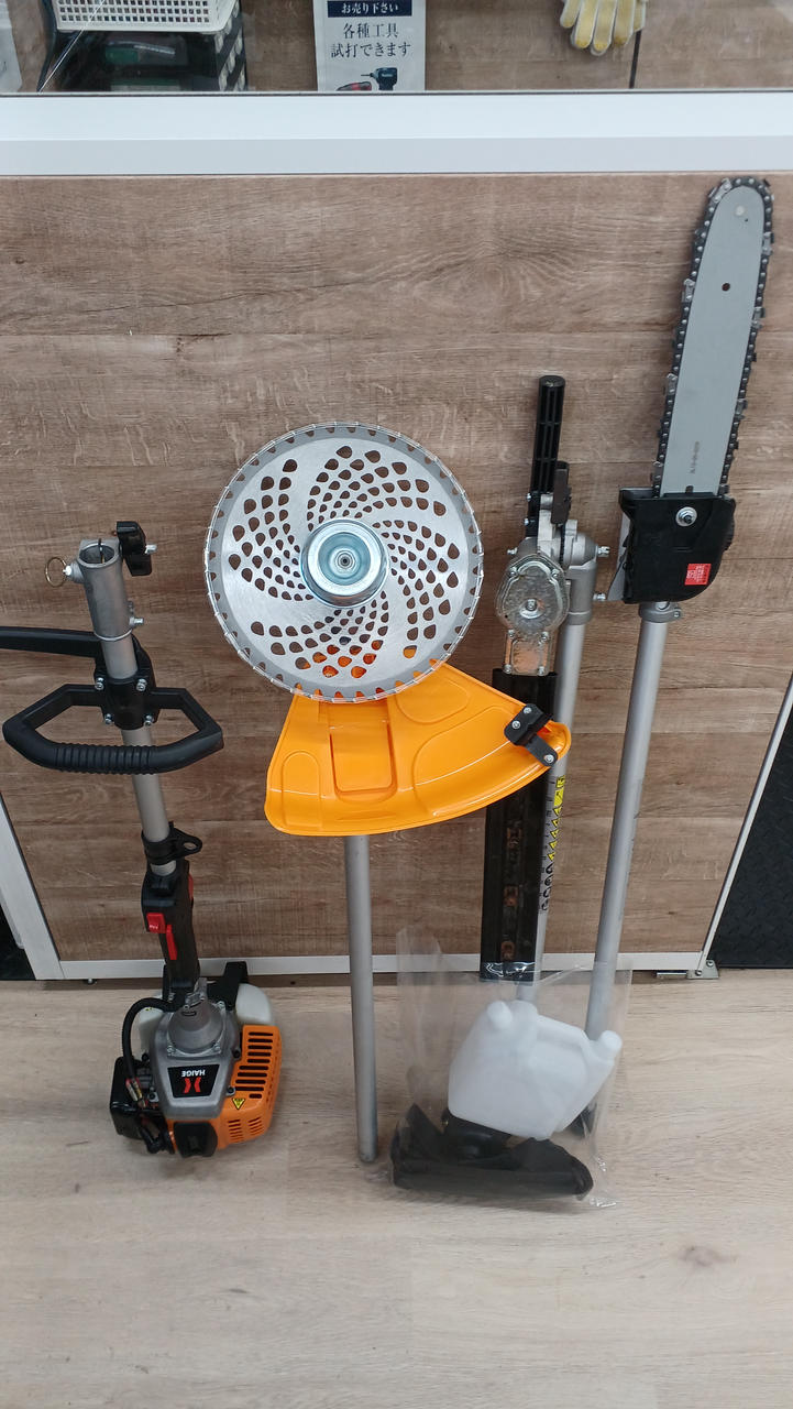 広範囲の草刈り、石や塀など障害物の多い場所の草刈り、高所の枝切り、生垣上部のお手入れなど一台4役で大活躍! |