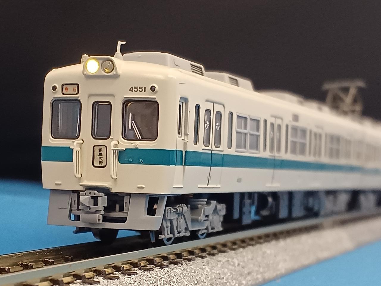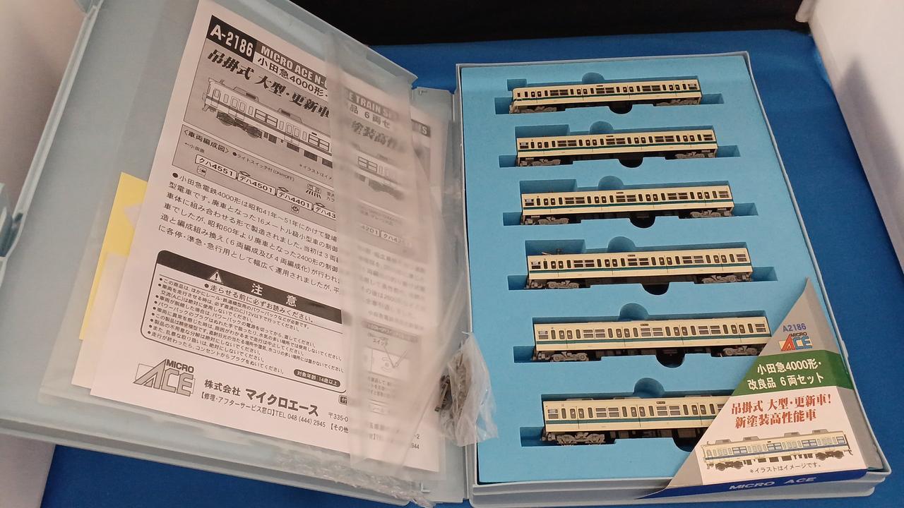 小田急の戦前~終戦直後製の旧型電車の走行機器を流用、車体と制御機器、台車のみを新製した機器流用車です。大手私鉄でも昔は機器流用車はポピュラーな存在で、車体は新しいのに走行音が古い吊り掛け駆動で、流用したMGの出力不足から非冷房だったりと細かいところで新車との違いがありました。ただ、機器流用車の東武5000系では吊り掛け駆動で冷房完備と、旅客サービス面では8000系と遜色ない車両もあったりと会社によりけりでした。小田急では車体長において時代遅れになっていた2400形の走行機器を4000形に移植、同時に冷房改造を施して新性能化を行って延命を図っています。他社の類似車両のほとんどが使い潰されたことを考えると長命だったと言えます