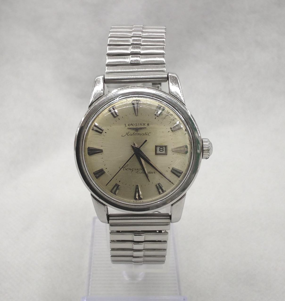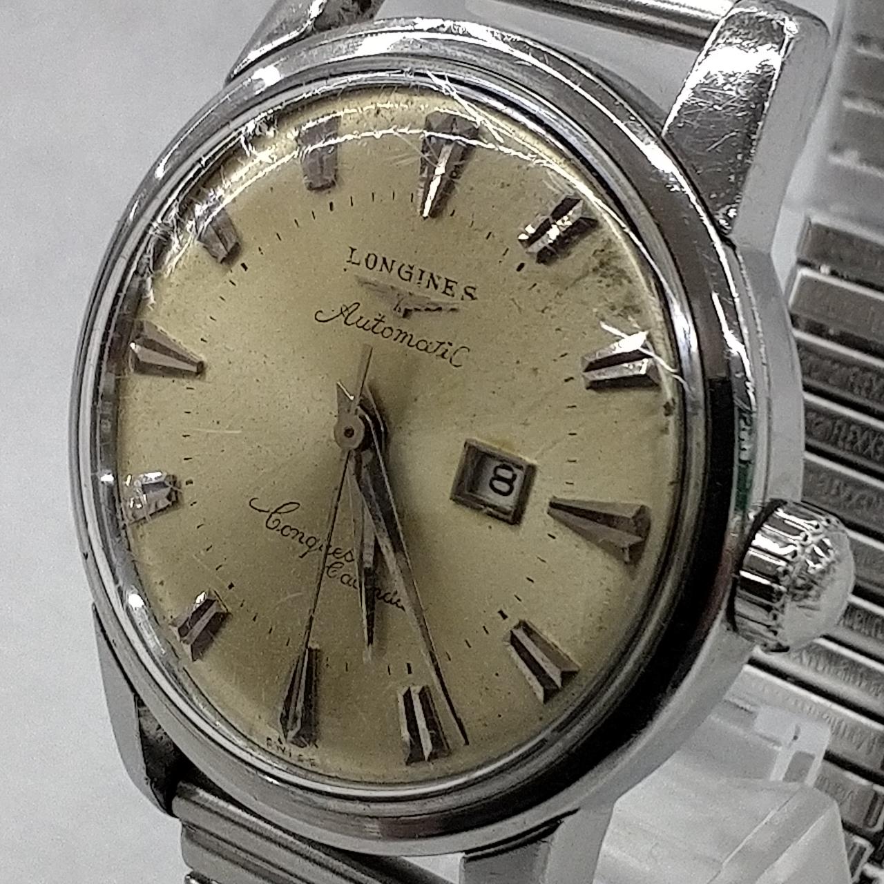アンティーク品の為、保証なし キズ、汚れあり、要メンテナンス品です。オメガのコンステレーションに対抗するロンジンのフラッグシップモデルとして販売されたハイグレードモデルです。裏蓋の魚と水草のメダリオンが特徴的です。 |