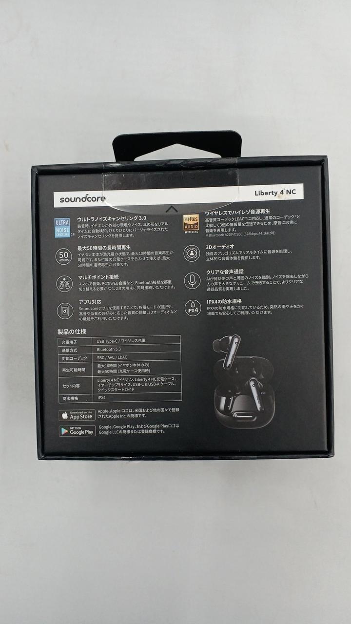 化粧箱、取扱説明書、充電ケーブル、イヤーピース |