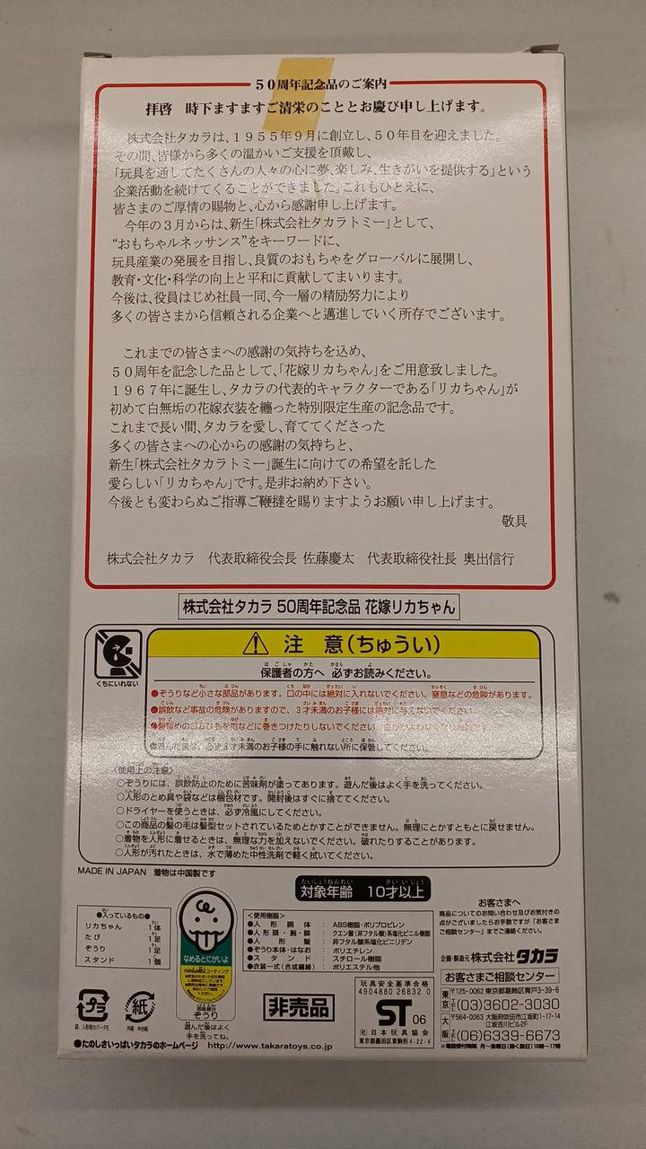 型番:花嫁リカちゃん 株式会社タカラ 50周年記念