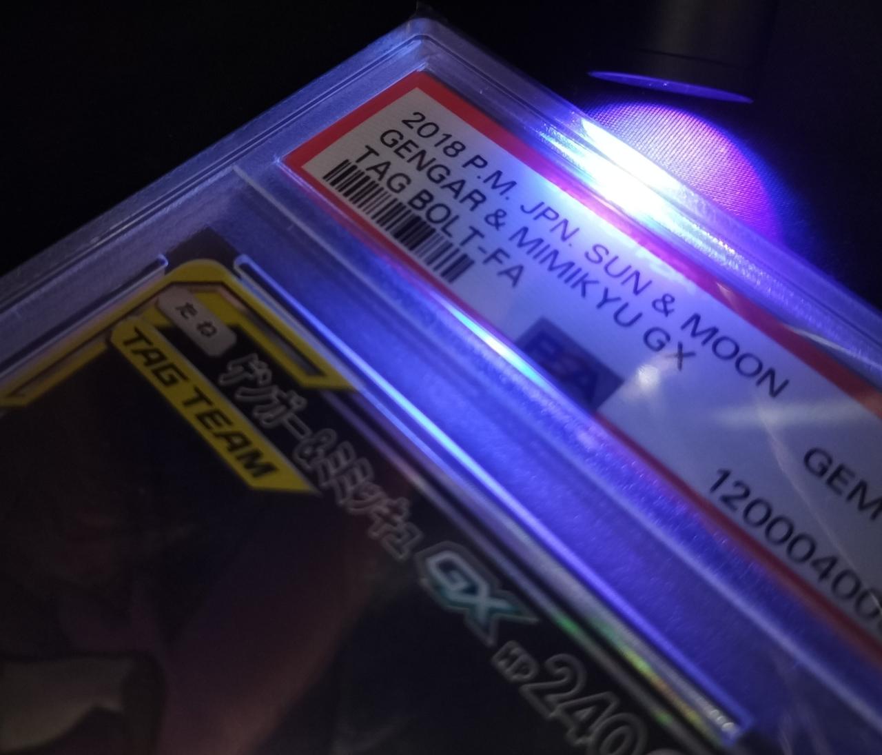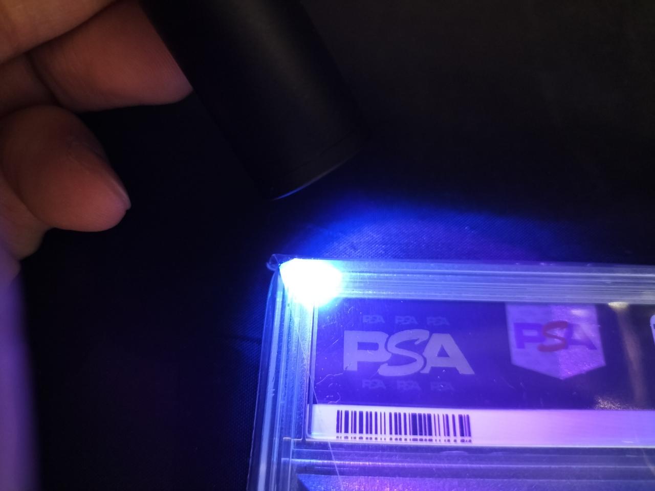 ブラックライトによるPSA文字の確認、PSAサイトにて該当品の実在確認、PSA番号記載上側のPSA文字の確認、ケースのPSA文字確認、ライトによる透かし確認など実施済み |