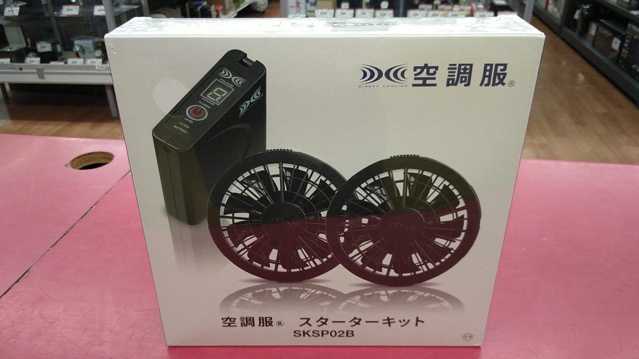 JIS IP55(防塵防水)規格適合。4段階の出力切り替え機能を搭載しています。9段階のバッテリー残量表示機能が付いています。ファン2個・ケーブル・バッテリー本体・充電器・バッテリーケースのワンボックスセットです。別売りのウェアと合わせれば、すぐ使用ができるスターターキットです。 |