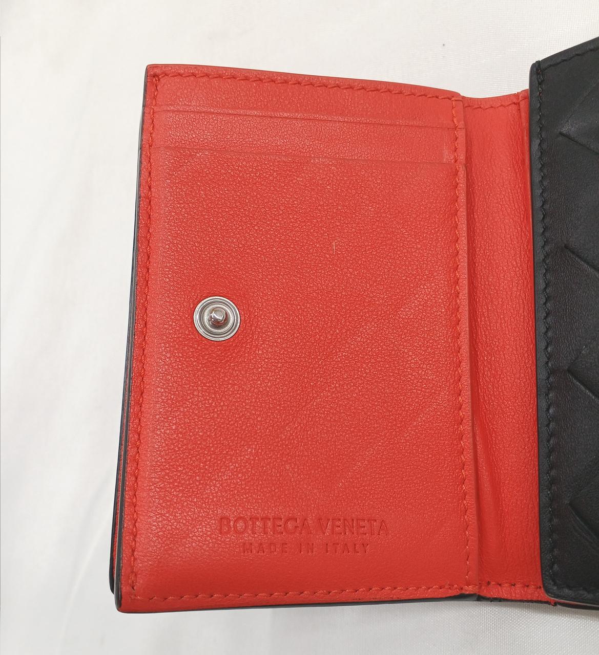 内部のオレンジカラーが素敵なBOTTEGA VENETAの三つ折り財布です!