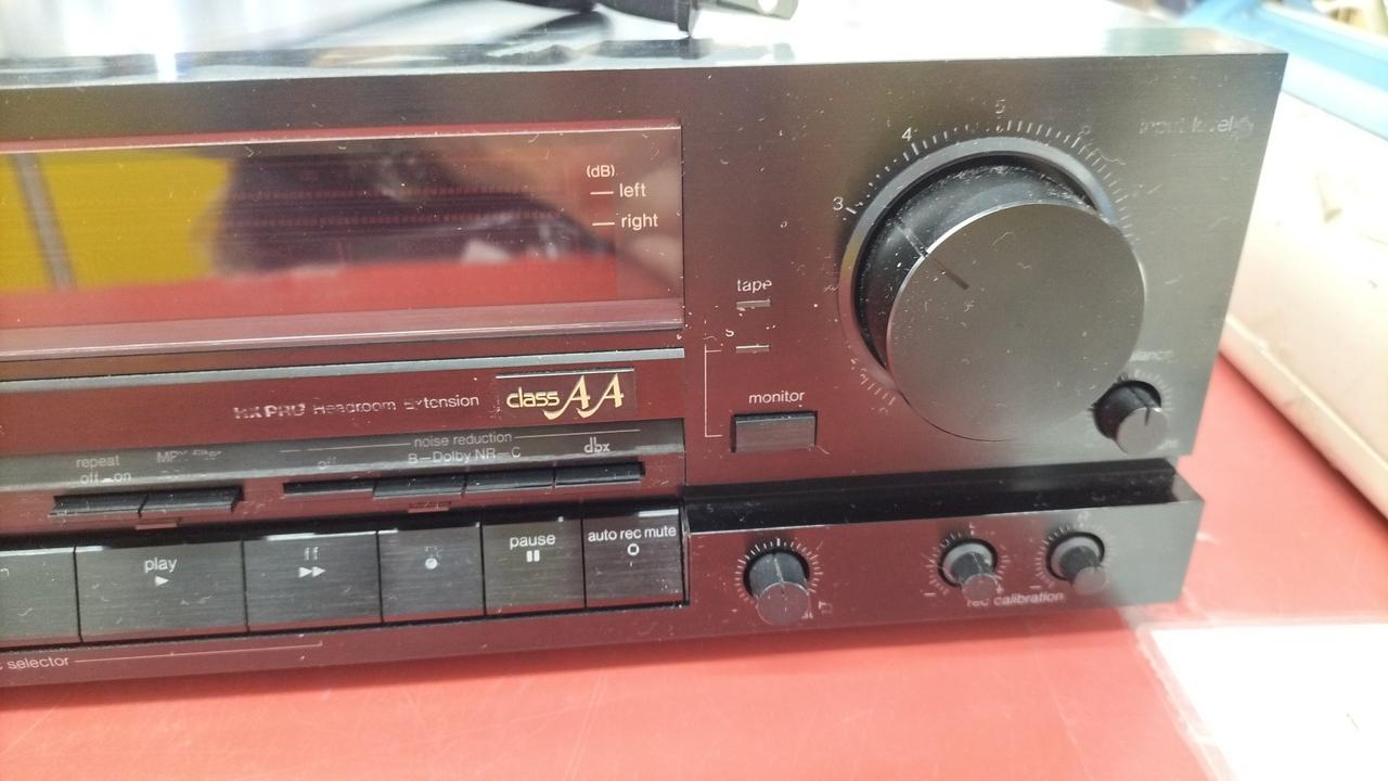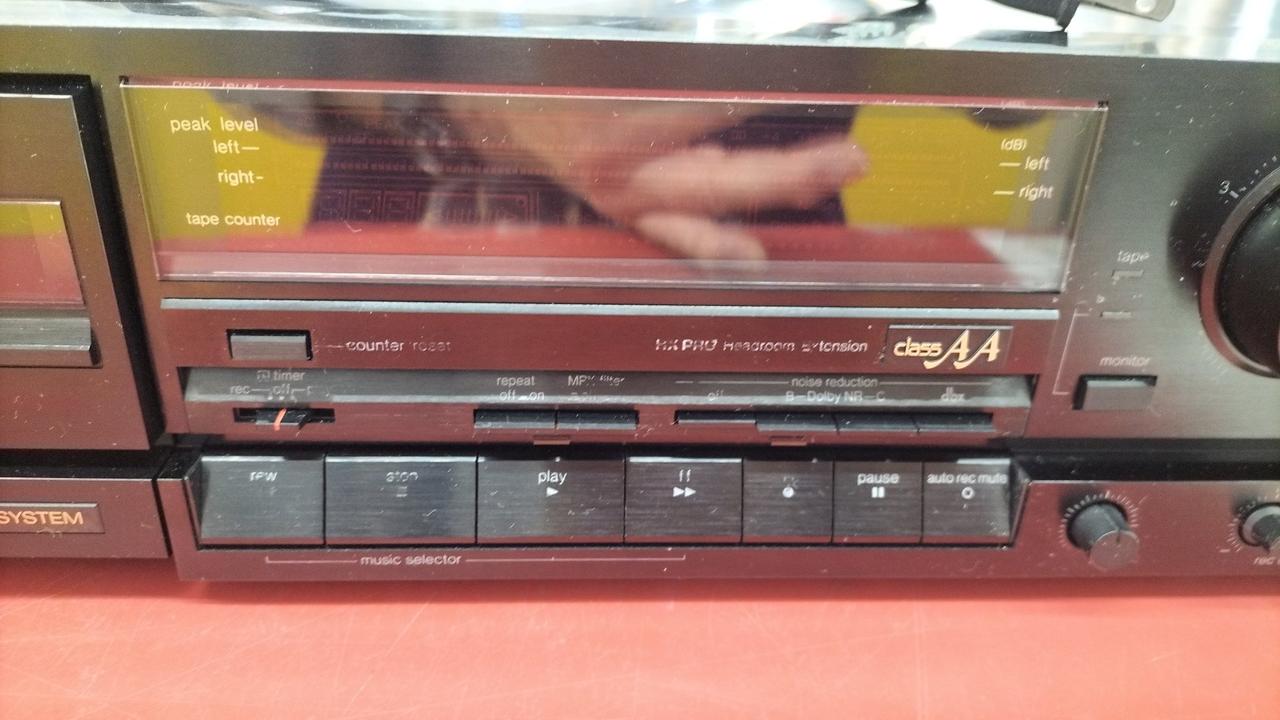 1988年頃に発売された3ヘッド・リファレンス・カセットデッキです。dbx&ドルビーB/C NR搭載、高性能アモルファスヘッド、精密ダイカストメカベースを採用し、10kHz±4dBのバイアスアジャストやRECキャリブレーション機能を持つ高性能機です。 |