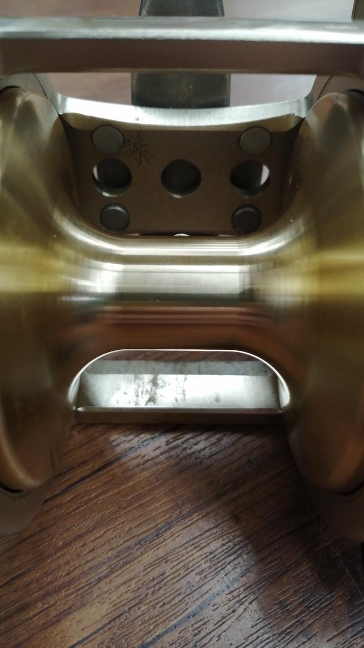 本体に傷や汚れが多く見受けられますが、ハンドルノブとスプールは綺麗です。動作も問題ありません。 |