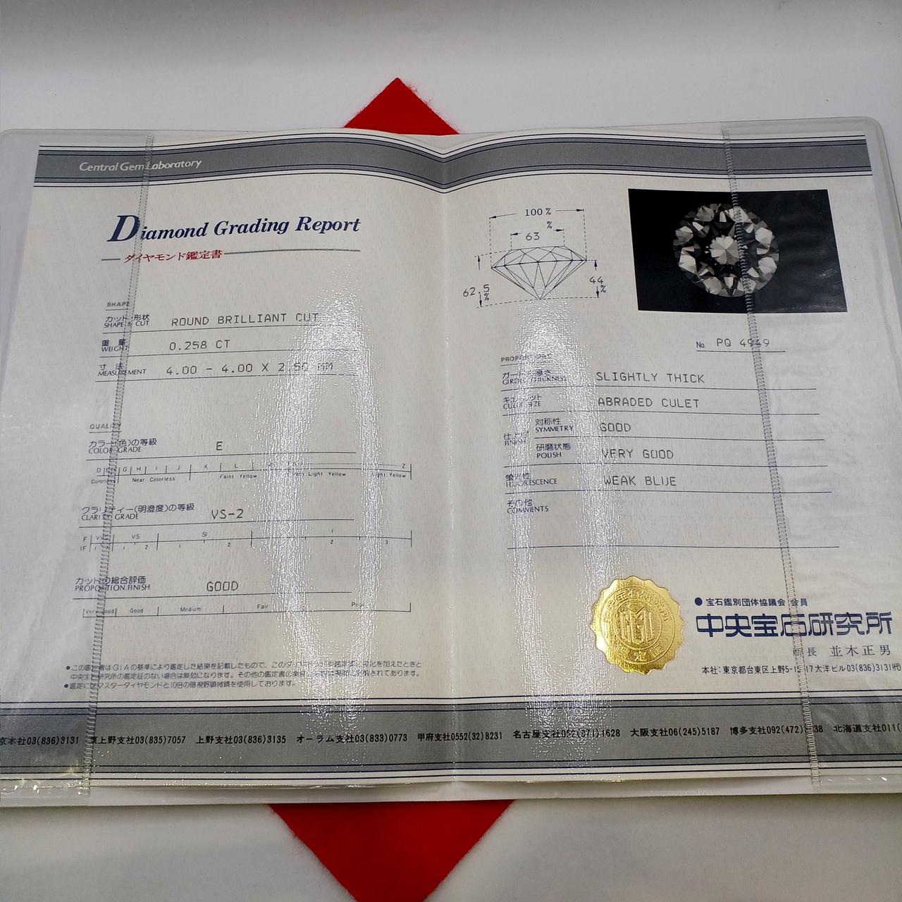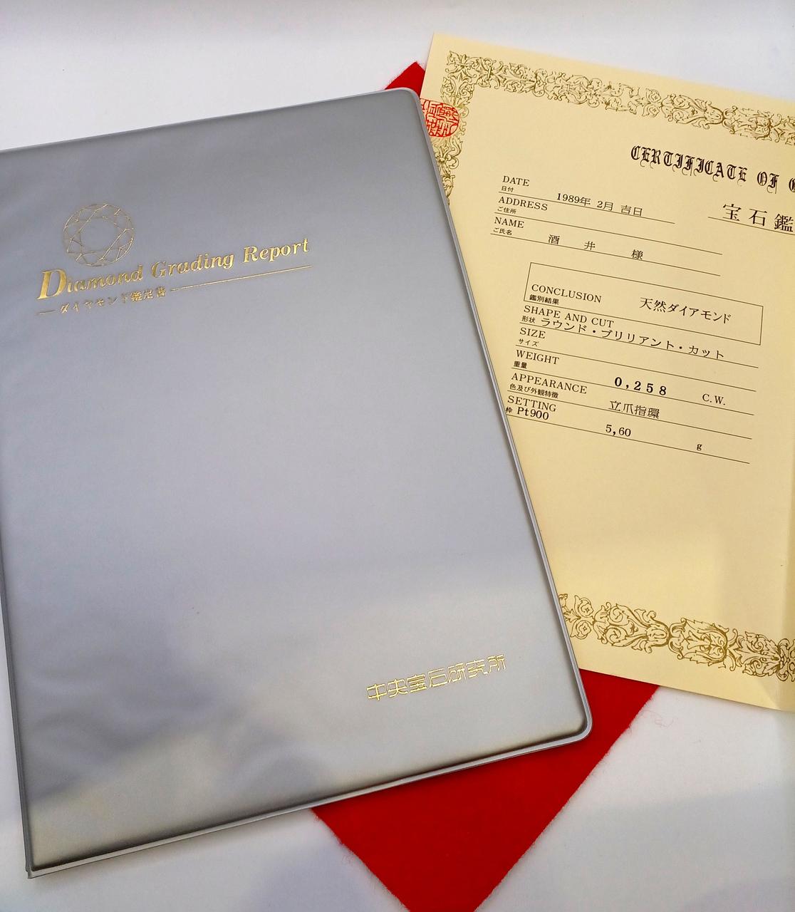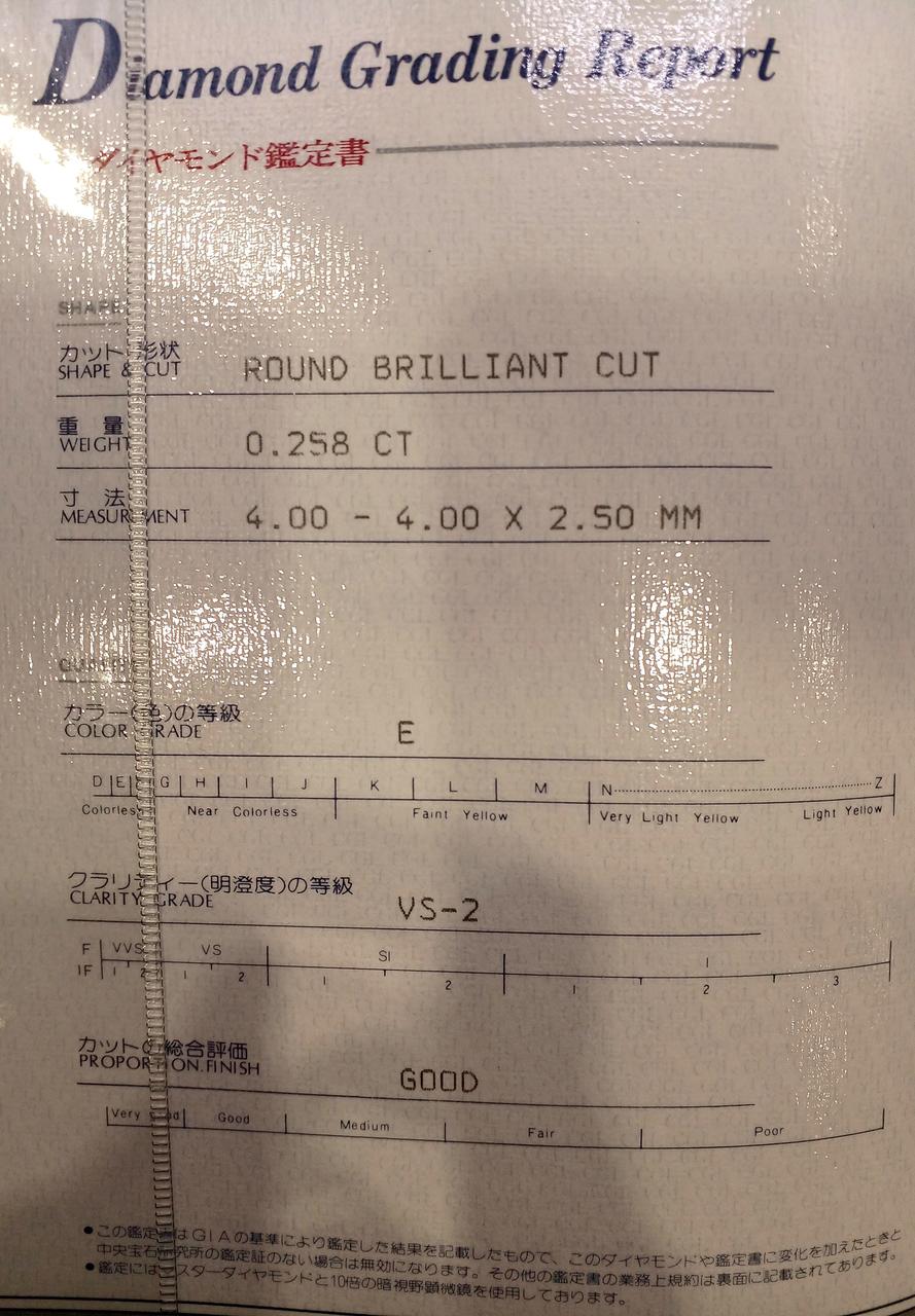 ダイヤモンド鑑定書付き。