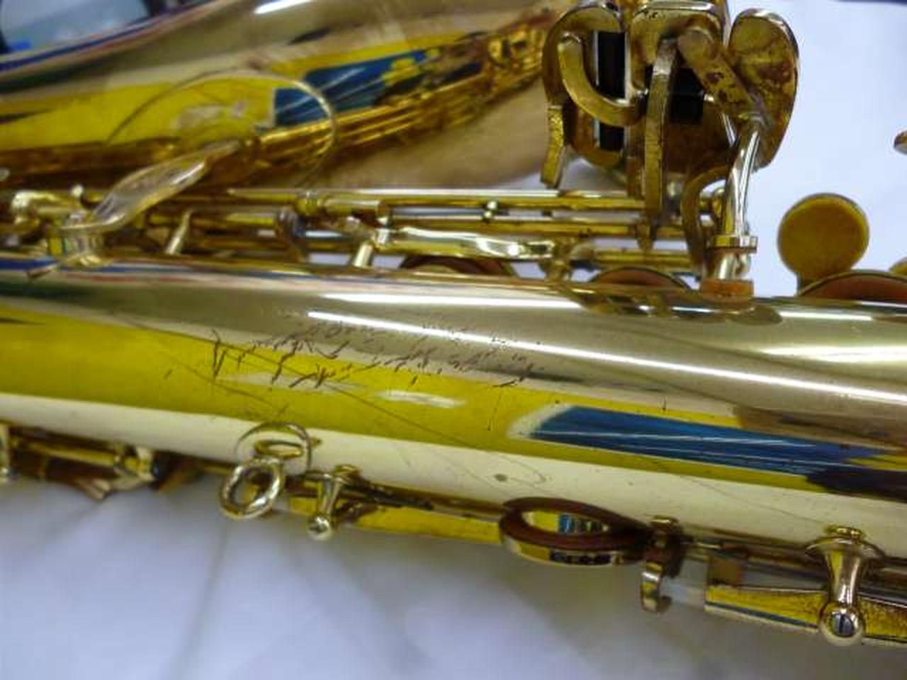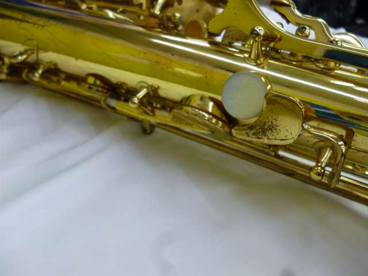 外観は経年によるくすみ、キズはありますが、凹みはありません キーのガタつきはなく、タンポは割れ・硬化なく弾力あります ネックコルクに一部欠けあります |