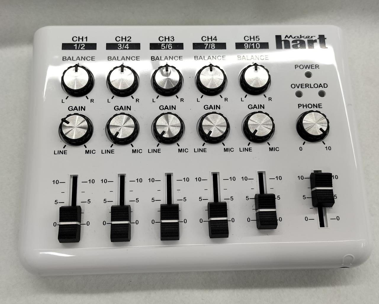 最大5つのステレオ入力,または10つのモノラル入力が可能なオーディオミキサー |