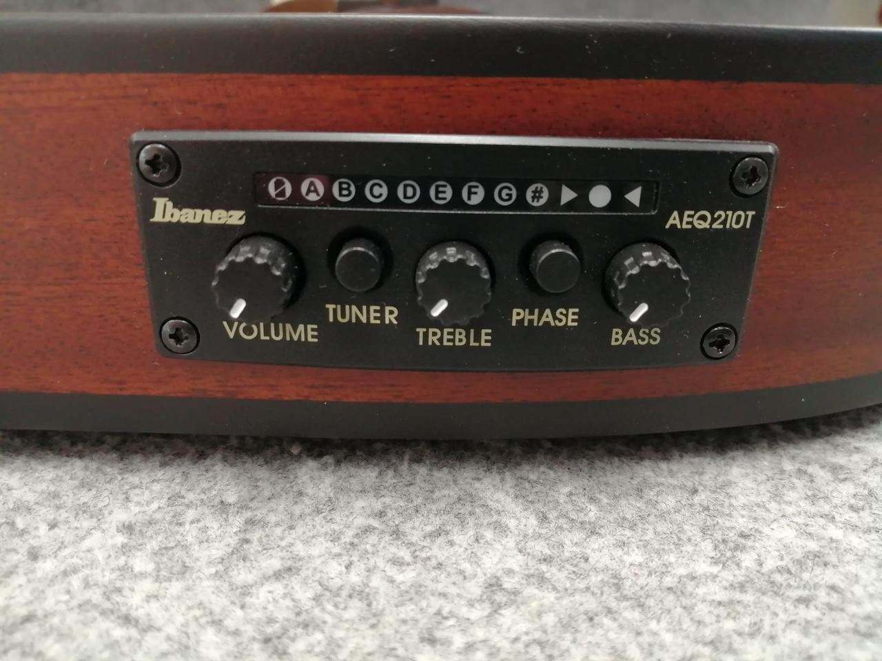 ボリューム、トレブル、ベース、チューナー、フェイズ |