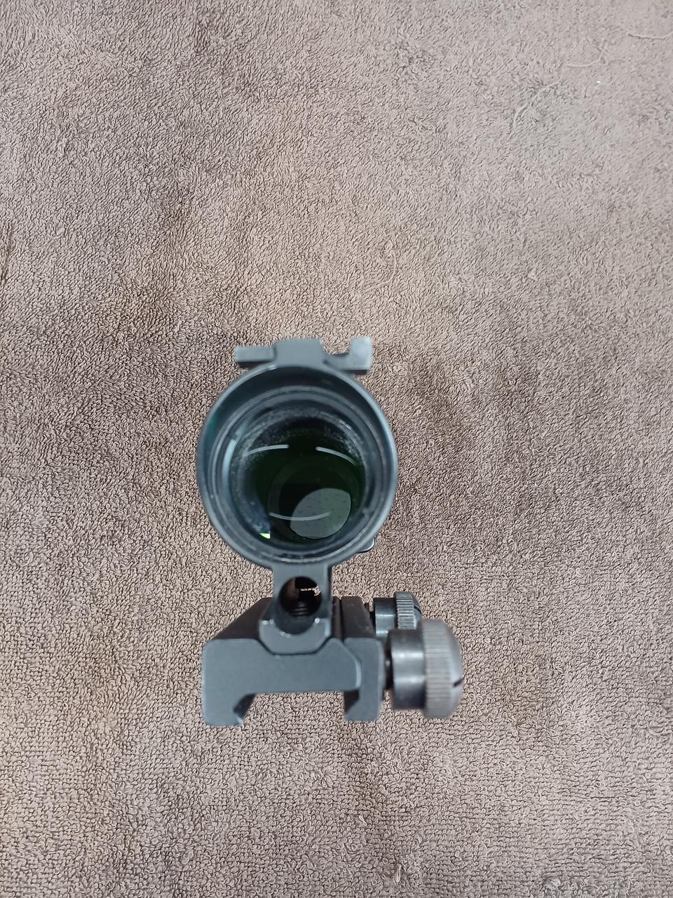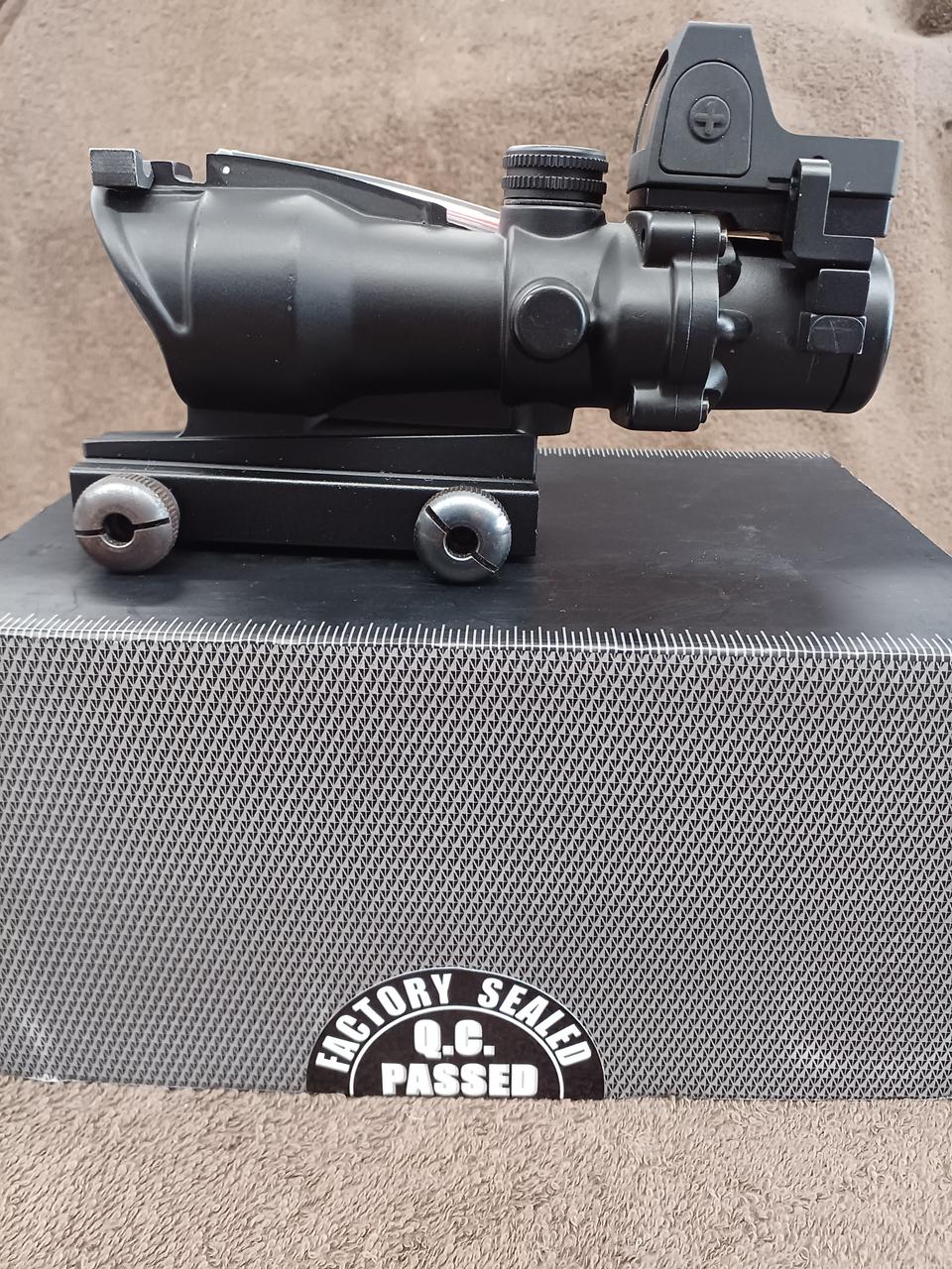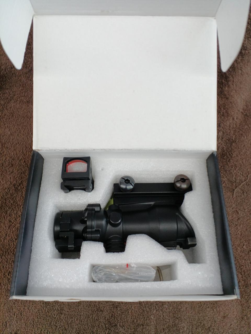 このモデルは米軍で採用されている「Trijicon ACOG TA31」の外観を再現しており、上部の集光ファイバーによって電池無しでレティクルを発光させる仕組みを備えているのが特徴です。
