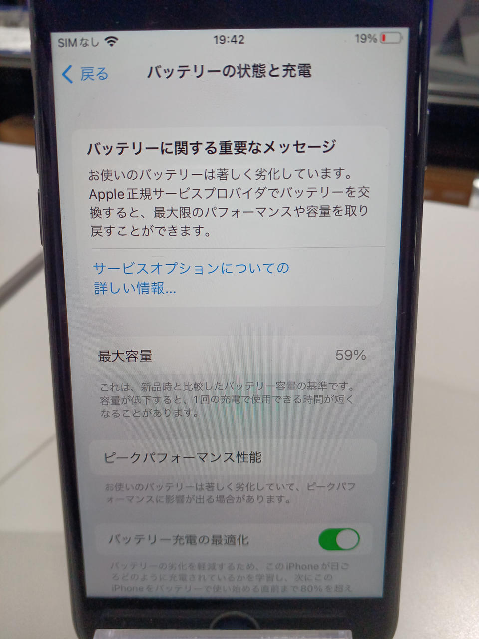 バッテリー最大容量:59% |