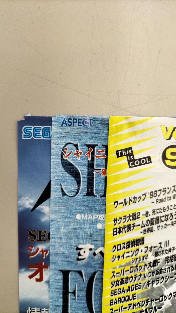 紙類の角に折れなどが有ります。ディスクに写真では確認出来ない小さな傷が有ります。 |