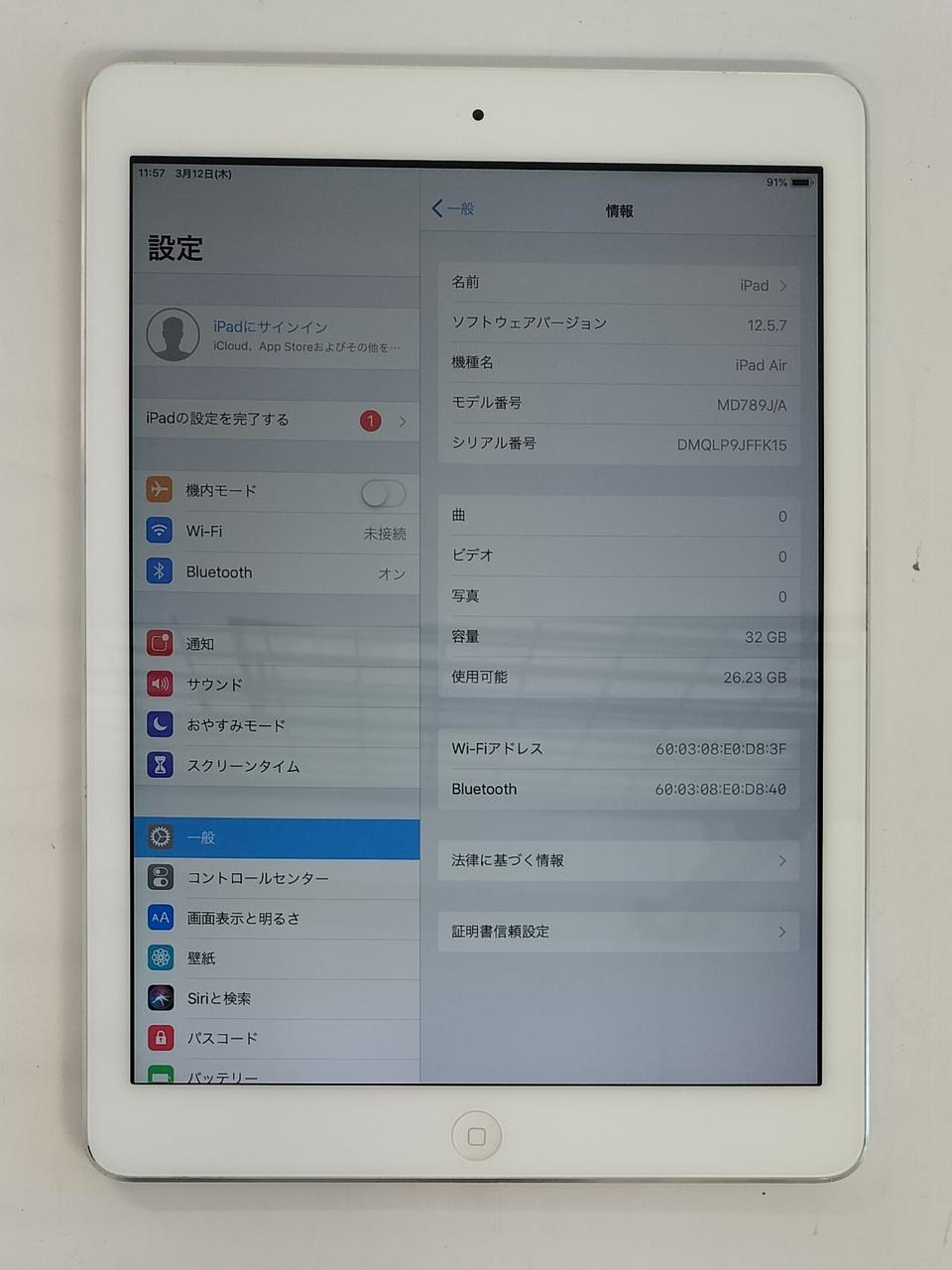 Wi-Fiモデル OS:iOS12.5.7(最終) ROM:32GB |