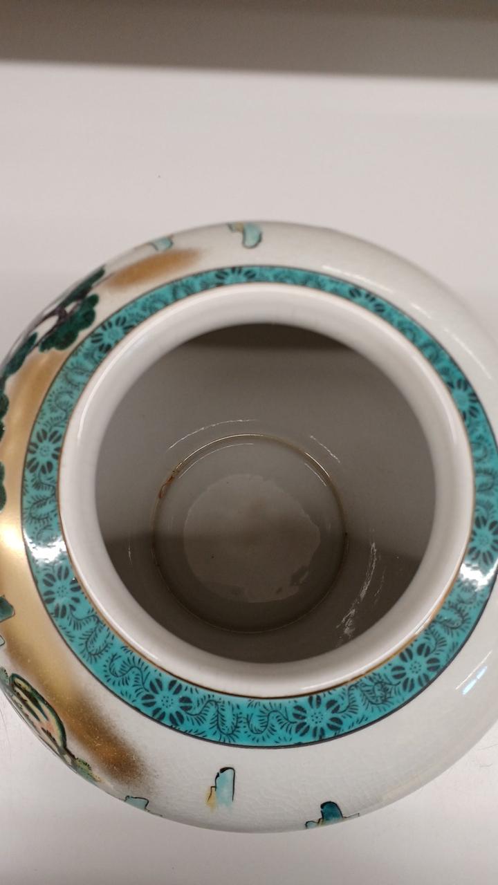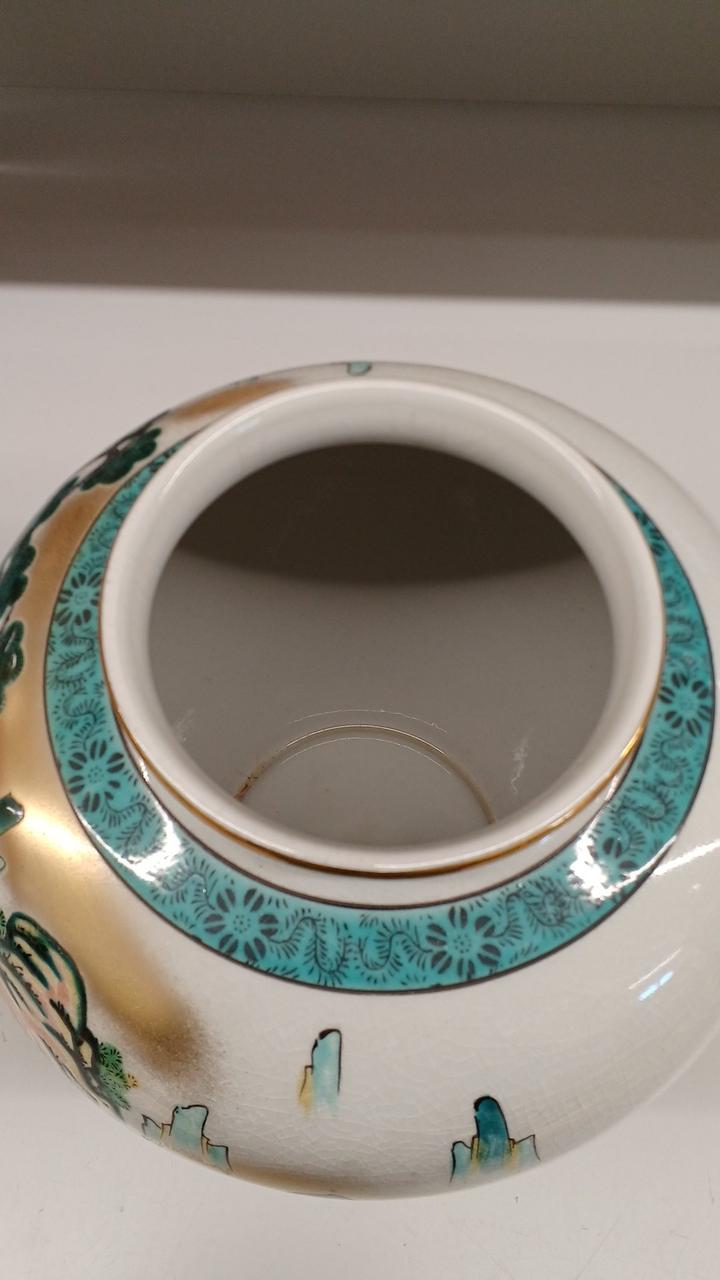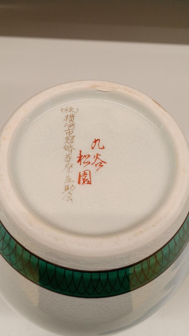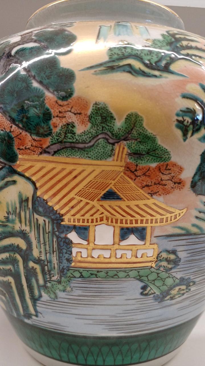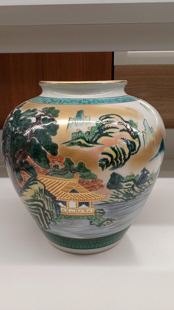 力強い松の木と風景が描かれた金彩が豪華で印象的な壺です!