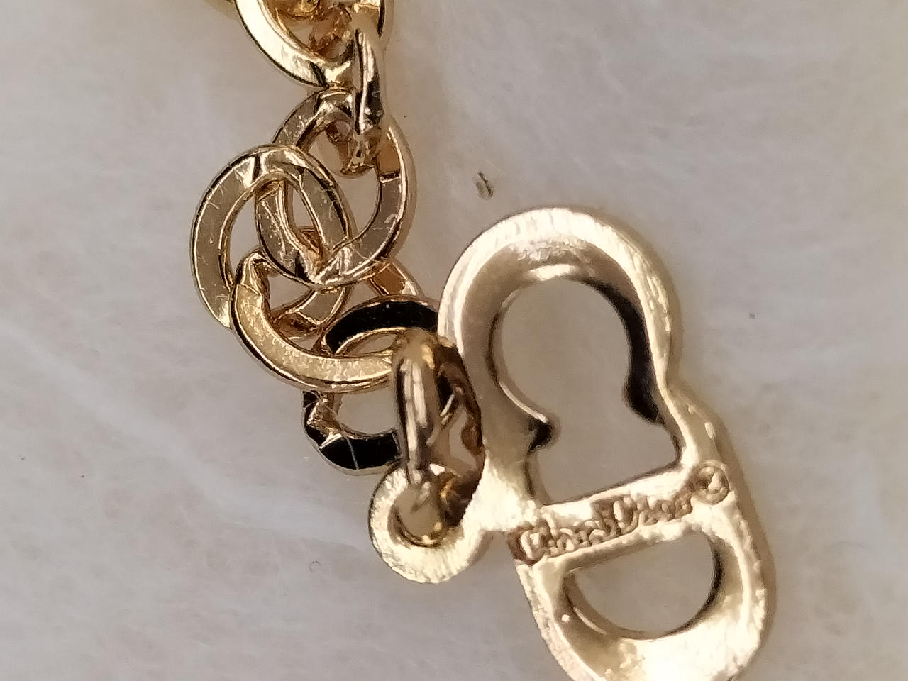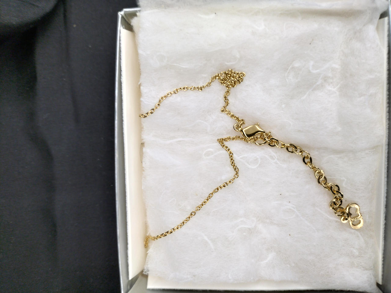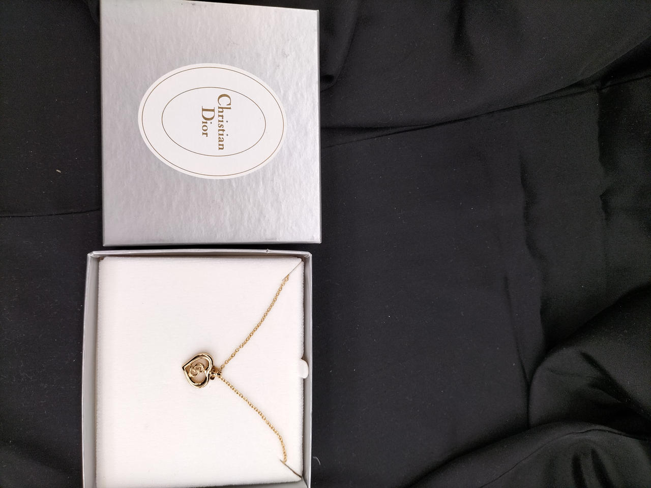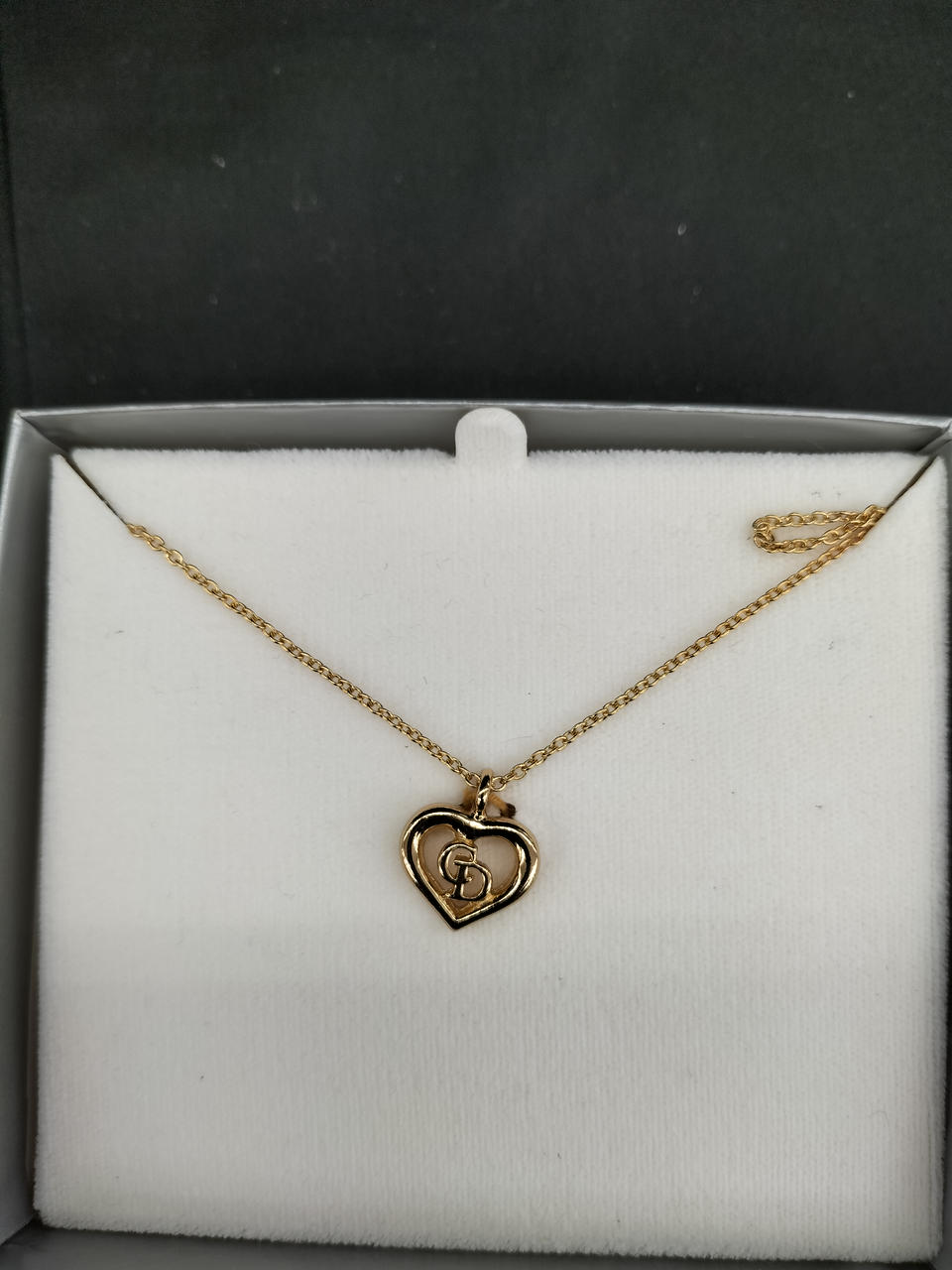 ハートモチーフの中にCDロゴの愛らしいネックレス。未使用。ブランドボックス入り。