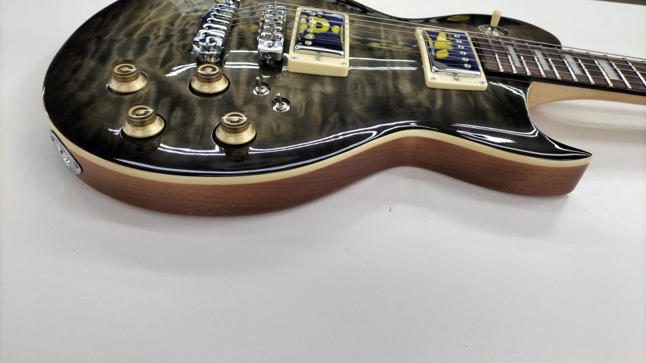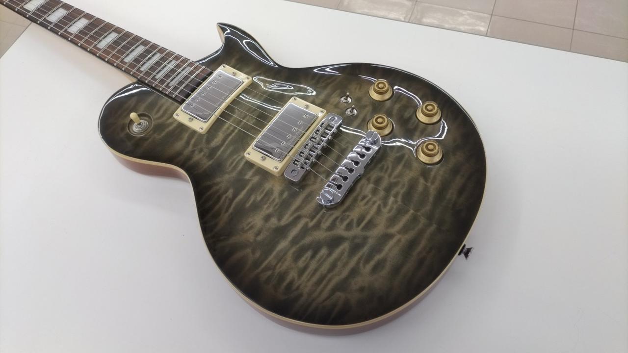 美しいキルテッドメイプルトップが映えるレスポールモデル。各ピックアップのシリーズ/パラレルを切り替えることが可能です。音出し問題ありませんでした。本体のみです。