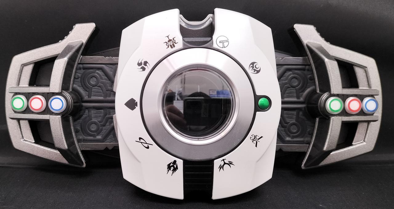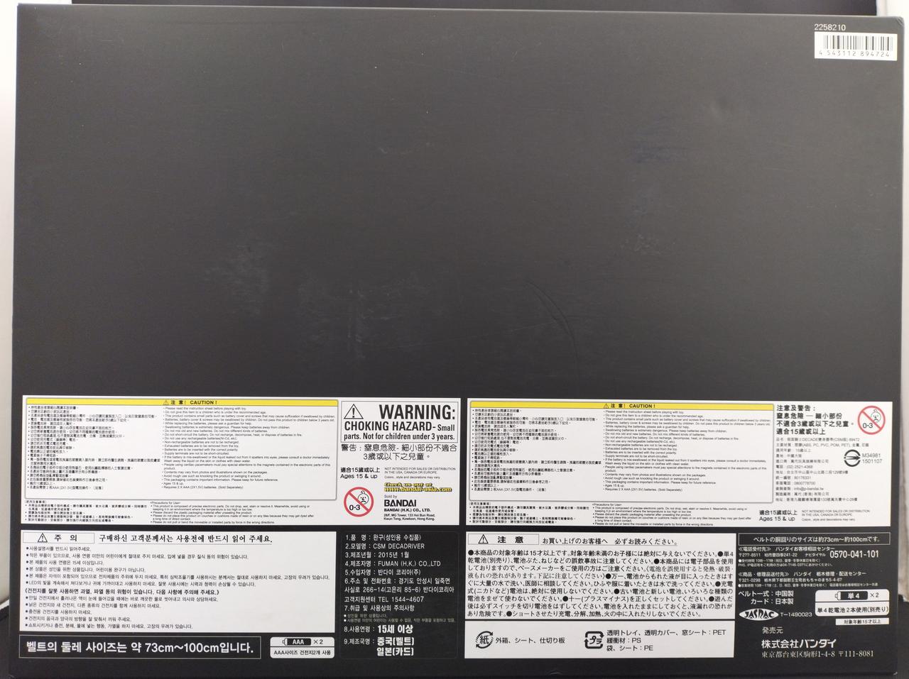 <CSMディケイドライバーのこだわりポイント>ポイント1:音声仕様が大幅にパワーアップ従来のDX版「ディケイドライバー」には未収録の音声を多数新規収録。付属のカードを本体にセットすることで、カード固有の音声「アタックライド イリュージョン」「アタックライド 音撃棒・烈火」などが発動。これまでにない新規の音声を聞くことができます。また、本体底面のボタンを押すことで、劇中で主人公が変身する際に流れていたBGMが鳴る仕様となっています。主人公の変身シーンで流れる印象的な曲を2曲収録しています。ポイント2:新カードデザイン カードデザインを、より劇中に近いデザインに変更。カードの素材はプラスチック製を実現し、「CSMディケイドライバー」本体には、仮面ライダーディケイドと平成ライダー9人にまつわるカード30枚が付属します。カメンライド、アタックライド、ファイナルフォームライド、ファイナルアタックライドと、幅広いカテゴリーのカードをラインナップしています。ポイント3:変身ベルト史上初の素材を採用中央のシルバーリング部分には、デジタルカメラのボディなどに採用されるアルミ素材を使用。メッキコーティングを施し、アルミの持つ独特な輝きを放ちます。また、中央ウィンドーの内部にはホログラムステッカーを使用し、高級感を実現しました。ポイント4:形状と彩色へのこだわりベルト帯部分の再現を目指し、従来のDX版「ディケイドライバー」からパーツを一新。ベルト帯形状は完全新規造型で、調整アジャスターも付属し、腰回りサイズは約100cmまで対応可能です。大人の鑑賞や装備に相応しいディティールを追加し、クオリティの向上を実現。さらにバックルの細部まで墨入れ塗装を行い、重厚感漂うベルトを再現。より深みのある質感に仕上げています。 |