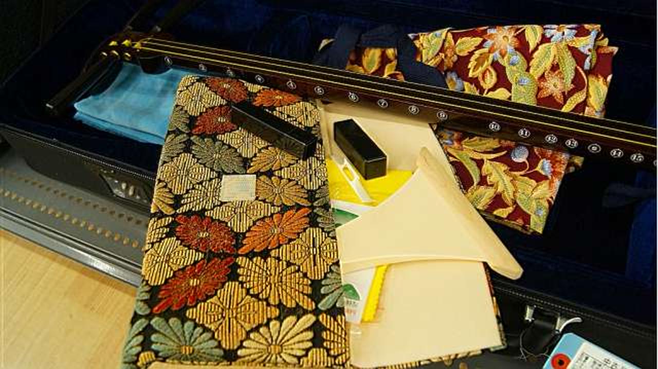 セミハードケース、弦、撥、糸、滑り止めシートが付属します。 |