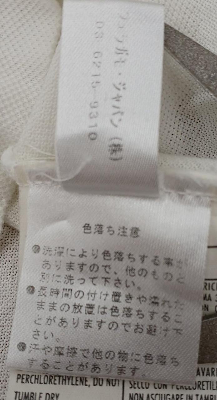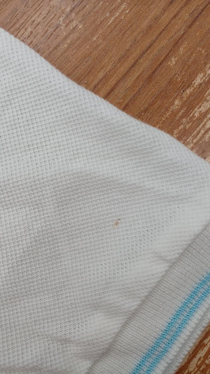 左胸辺りと左袖部分に汚れが見られます。 |