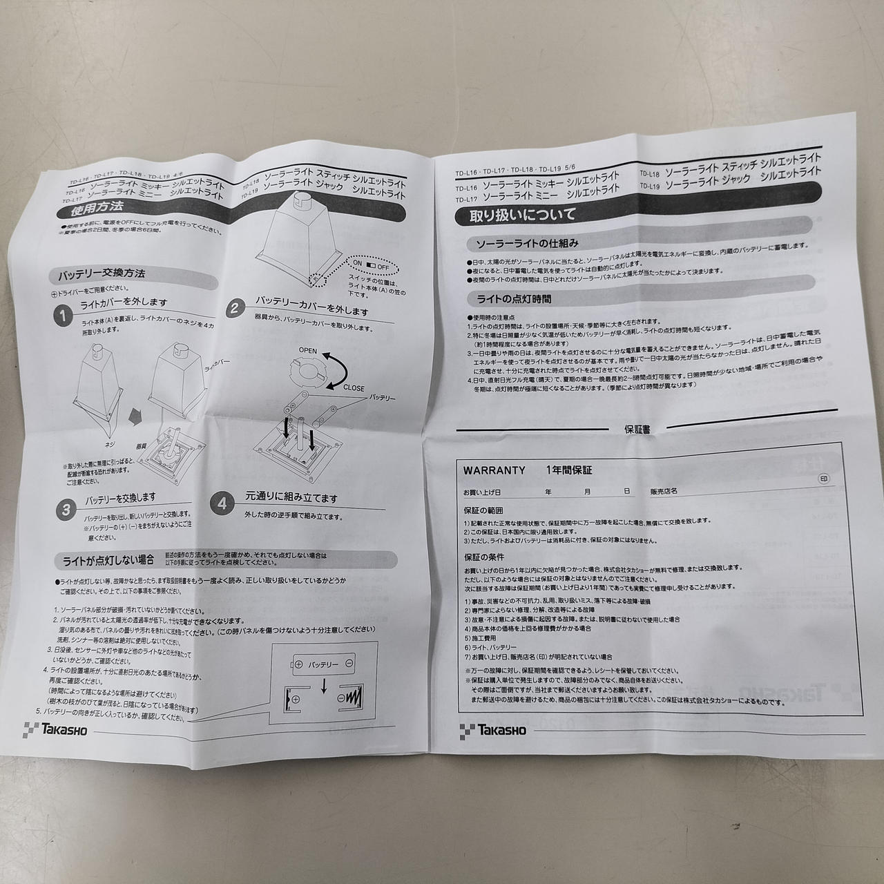 電気代不要で暗くなると自動点灯する。 |