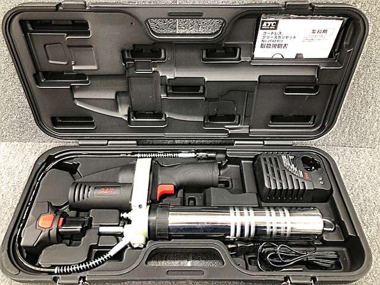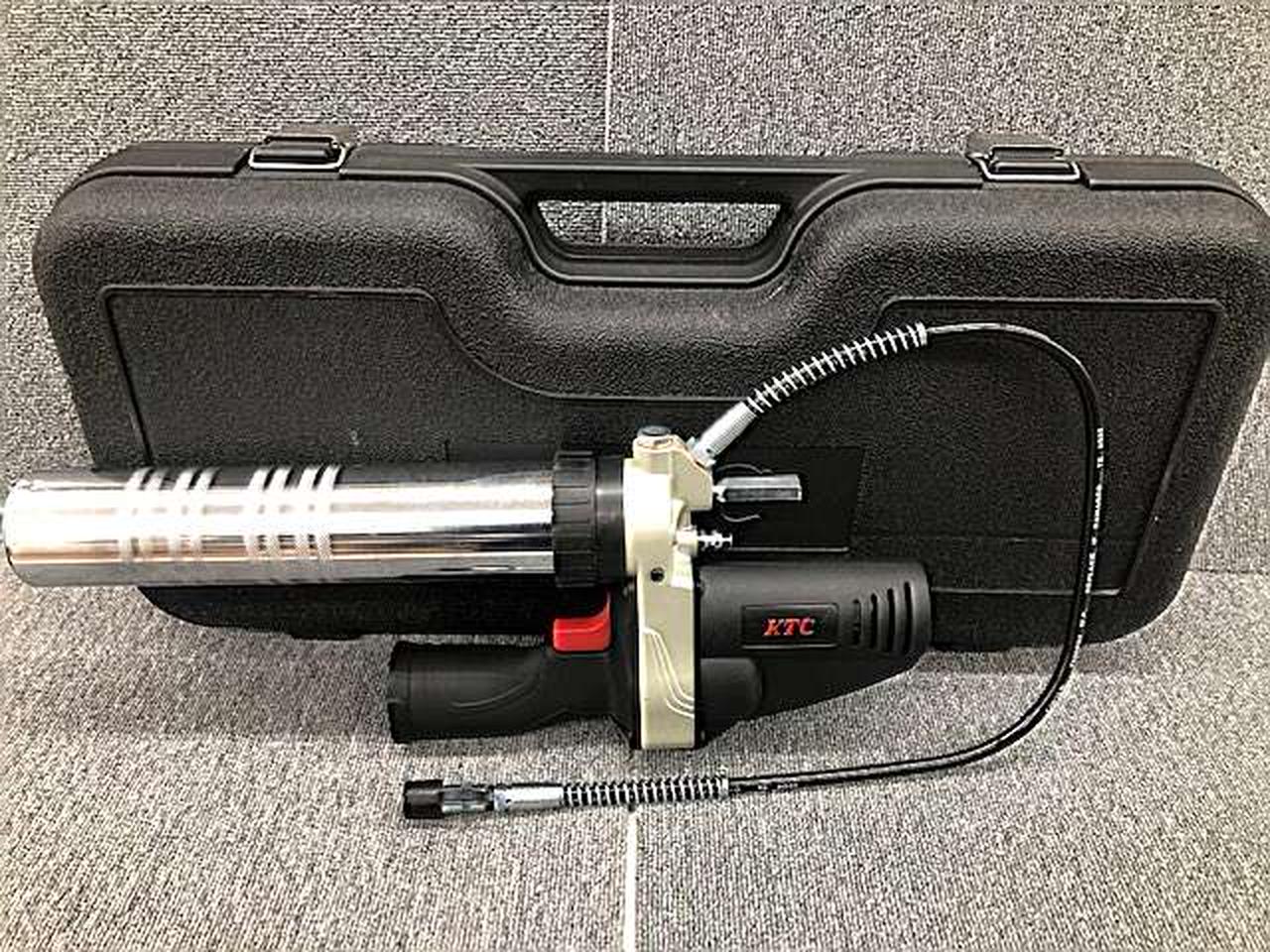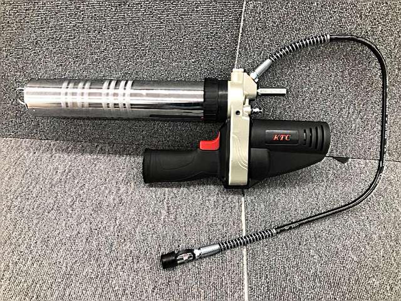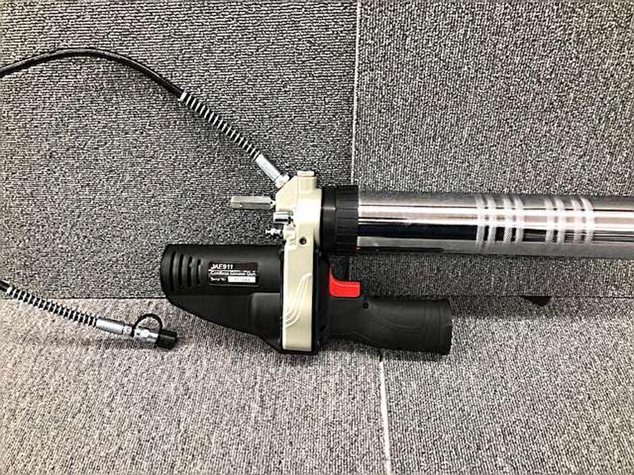 グリースニップルからのグリース充填を行うグリースガンコードレスグリースガンのセット |