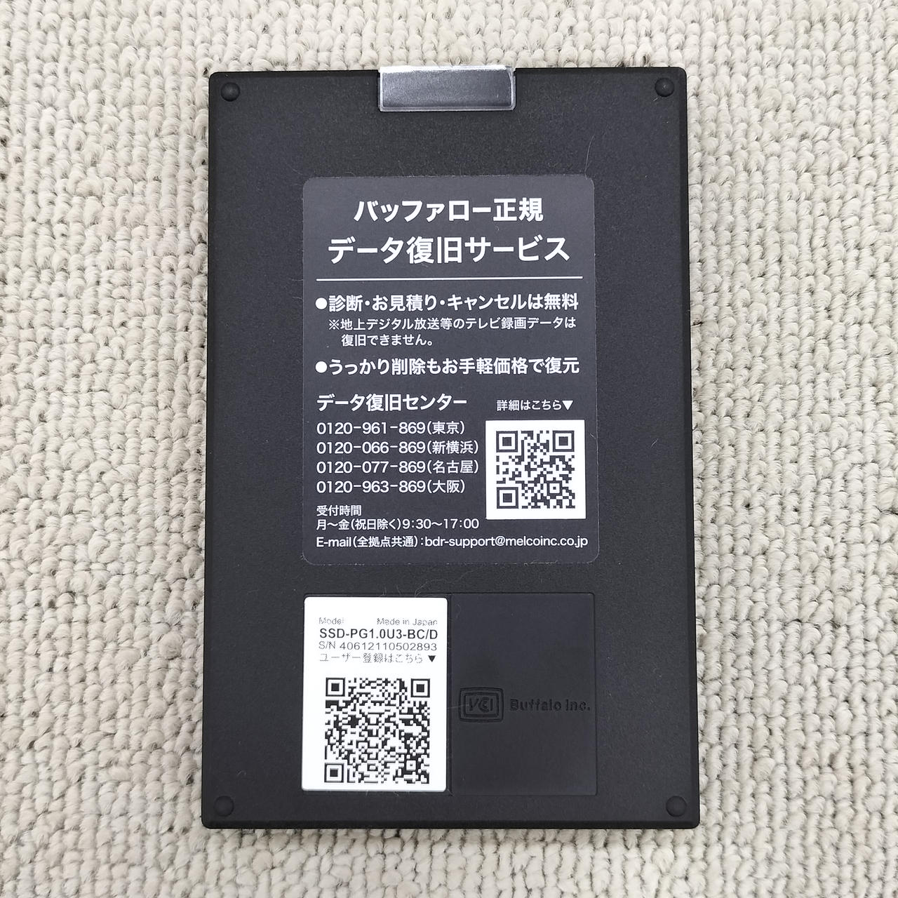 電源投入回数:343回 使用時間:269時間 (フォーマット作業前チェック時) |