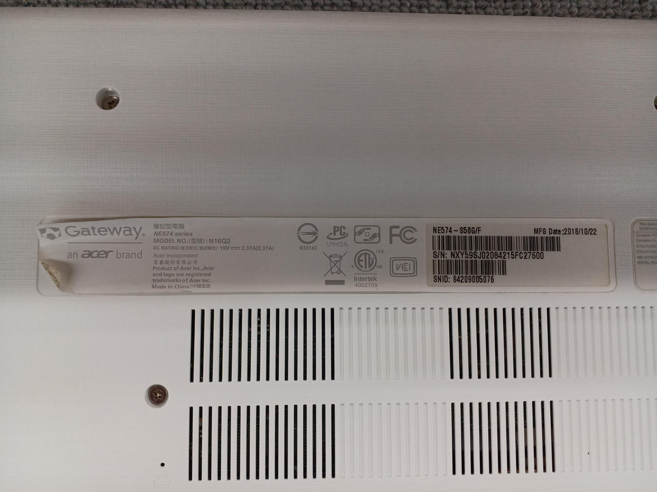 ※電源ケーブル付属。バッテーリー最大75%。動作重いです。リカバリ済み