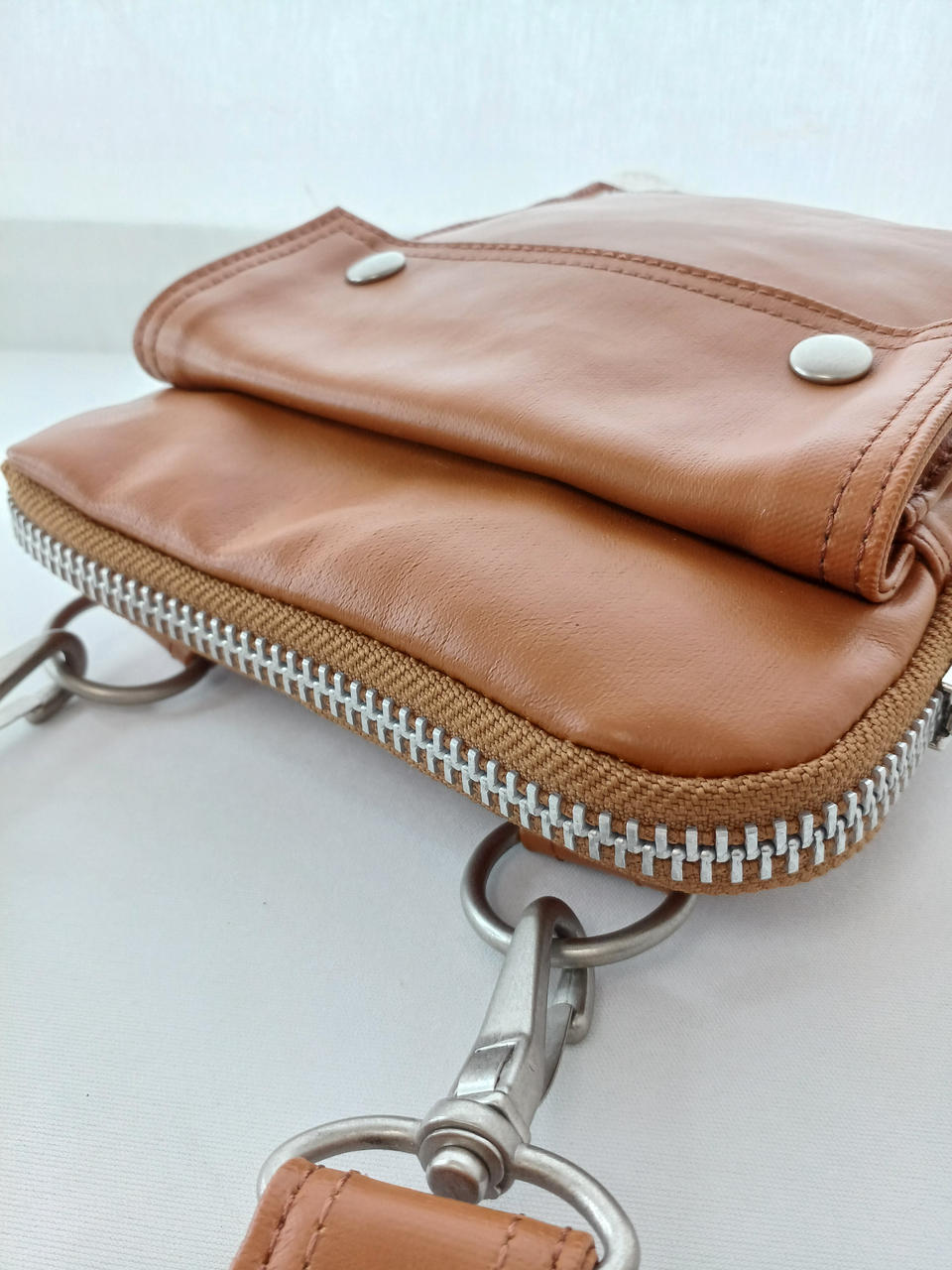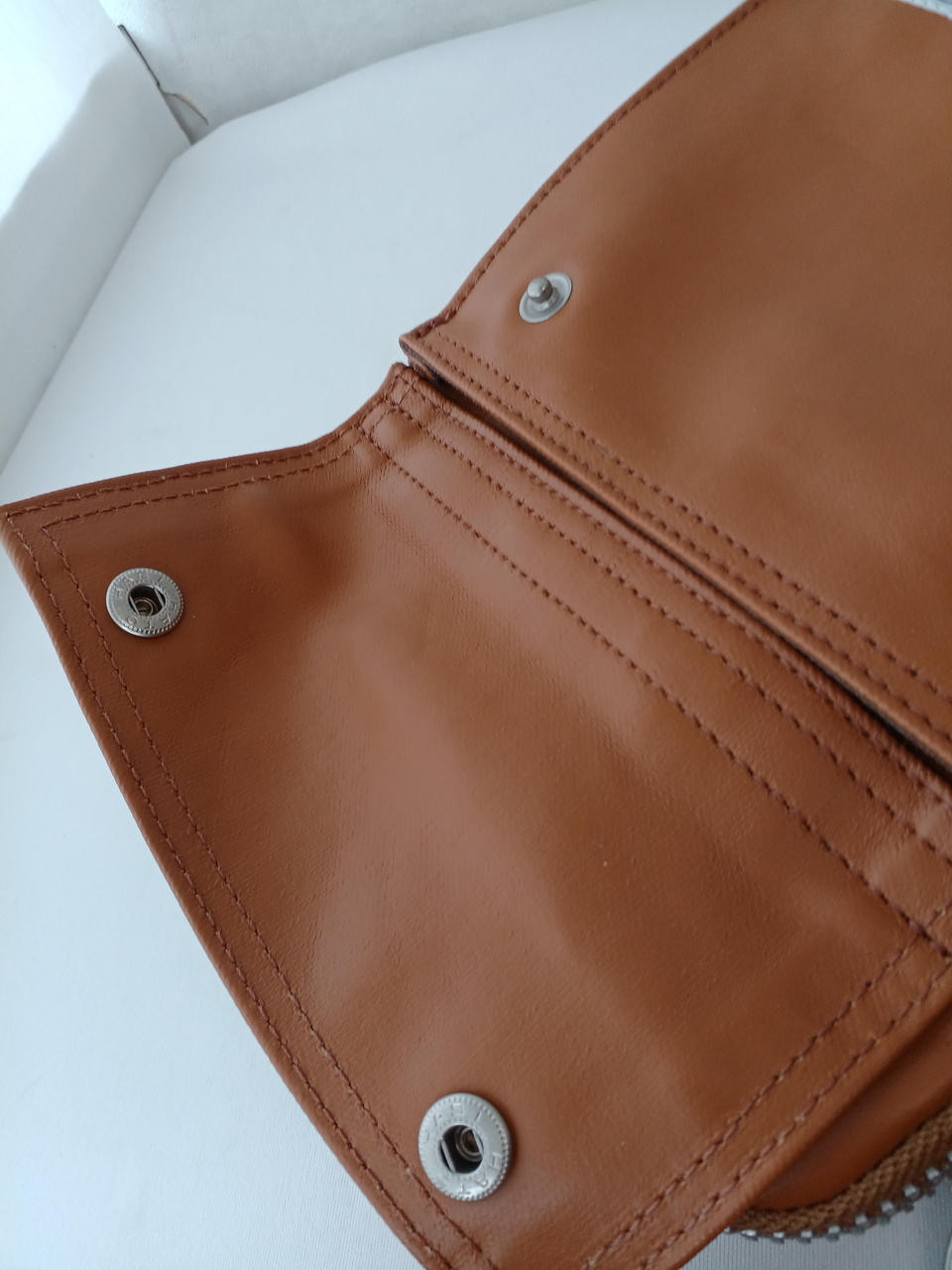 レザーの様に見える、高密度キャンバスにポリウレタンをコーティングした素材です。 |