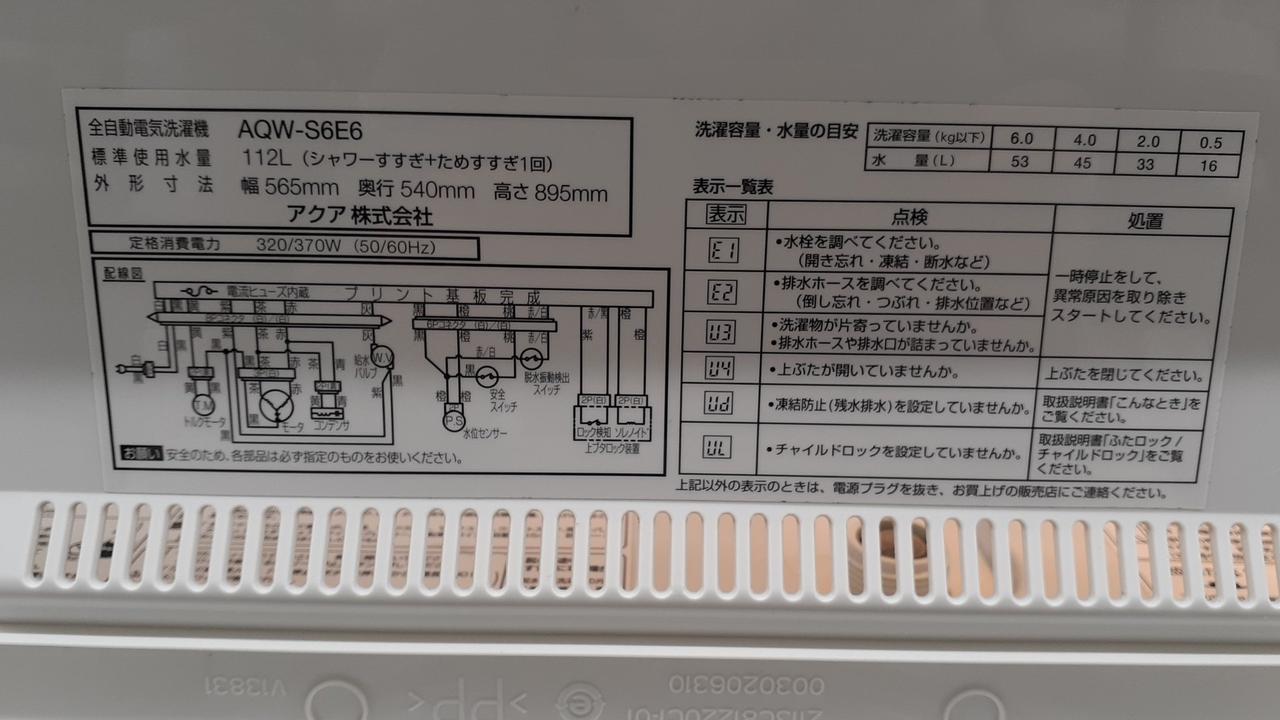 洗濯容量:6Kg |