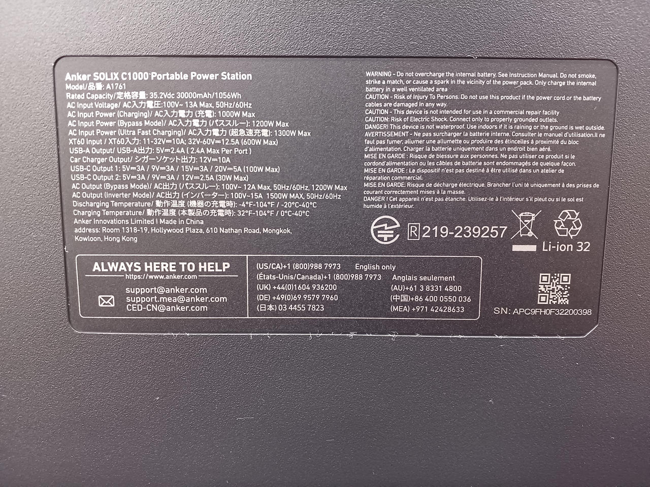 ANKER Solix C1000 Portable Power Station A1761 |