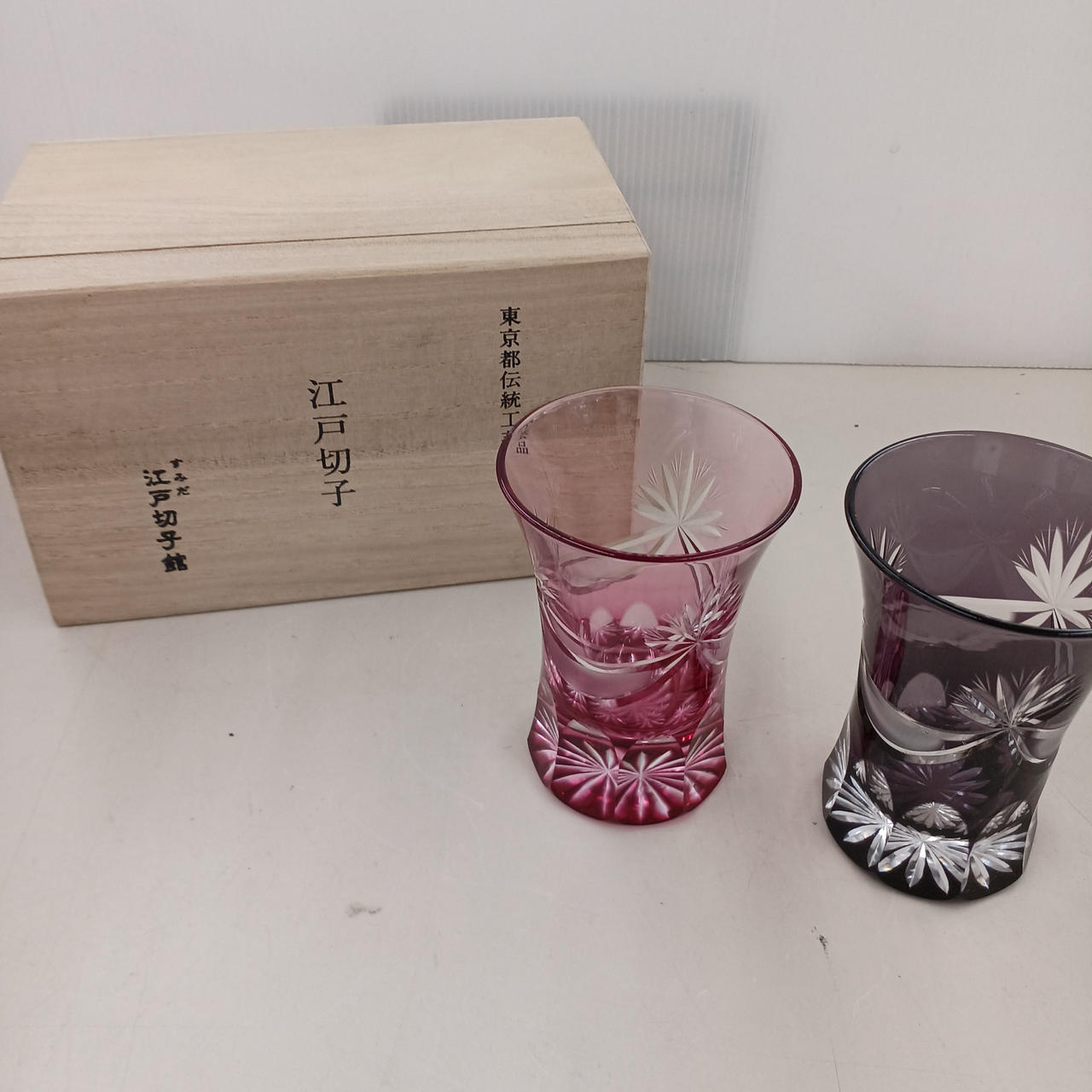 箱 江戸切子グラス×2