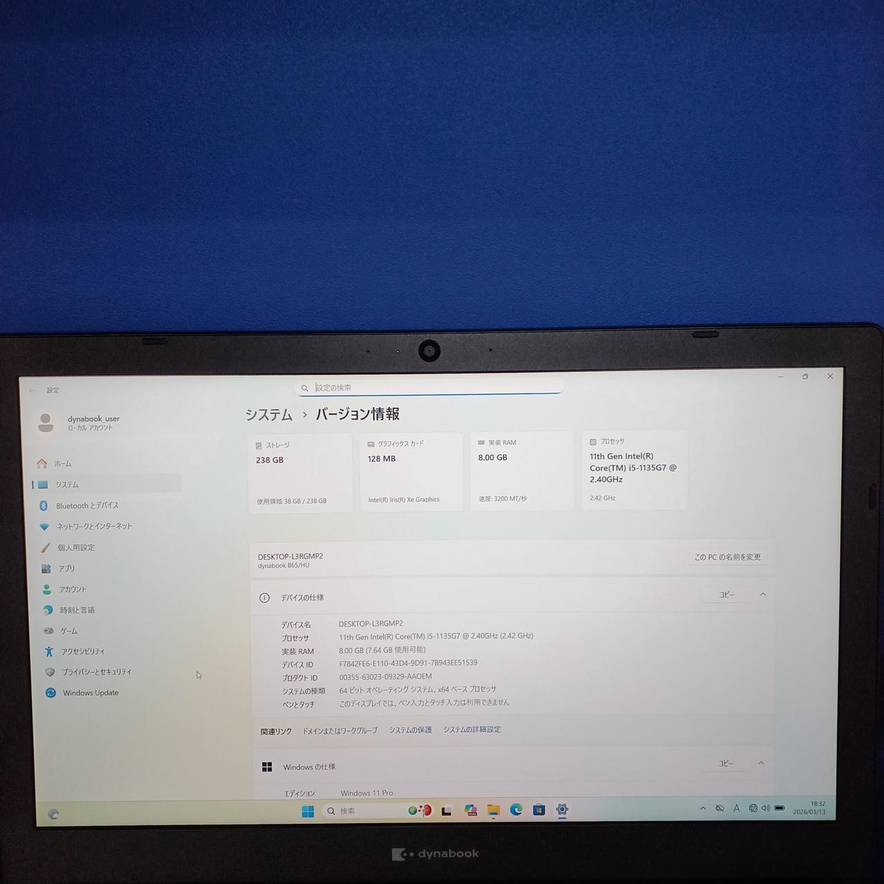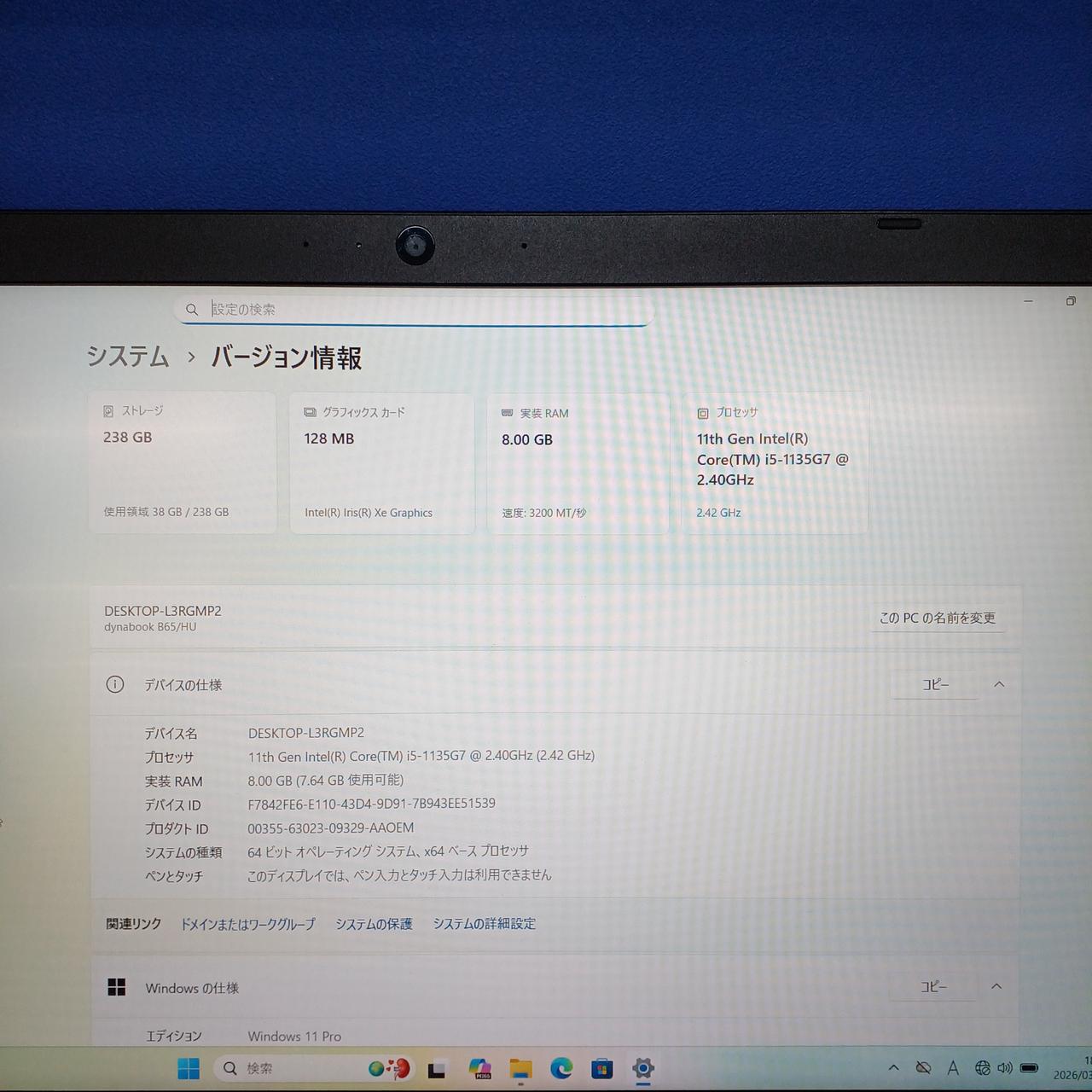 15.6 型 FWXGA (1366x768) Core i5-1135G7@2.4GHz/4コア |